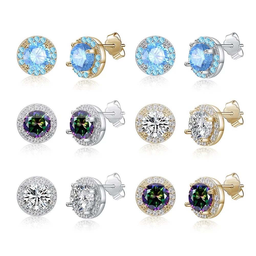 100% 925 Sterling Silver CZ Korean Colors Round Crystal Long Earrings Female Earrings Classical Jewelry Gift PTEE016