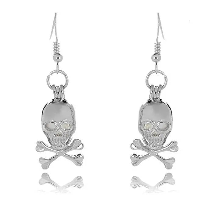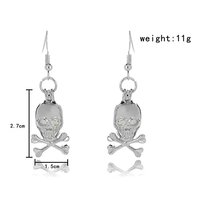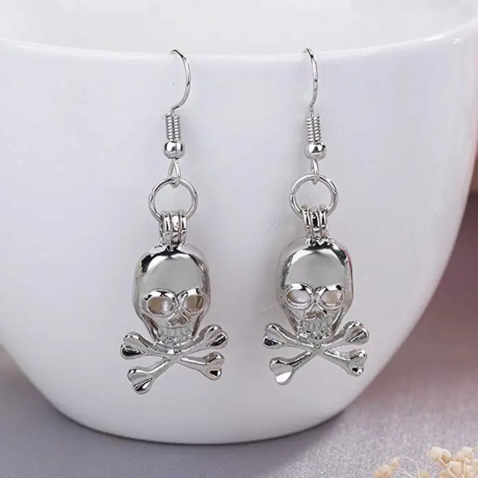 Pearl Oyster Locket Cage 6-7 mm Cultured Oval Pearls Skull Pendant Dangle Earrings