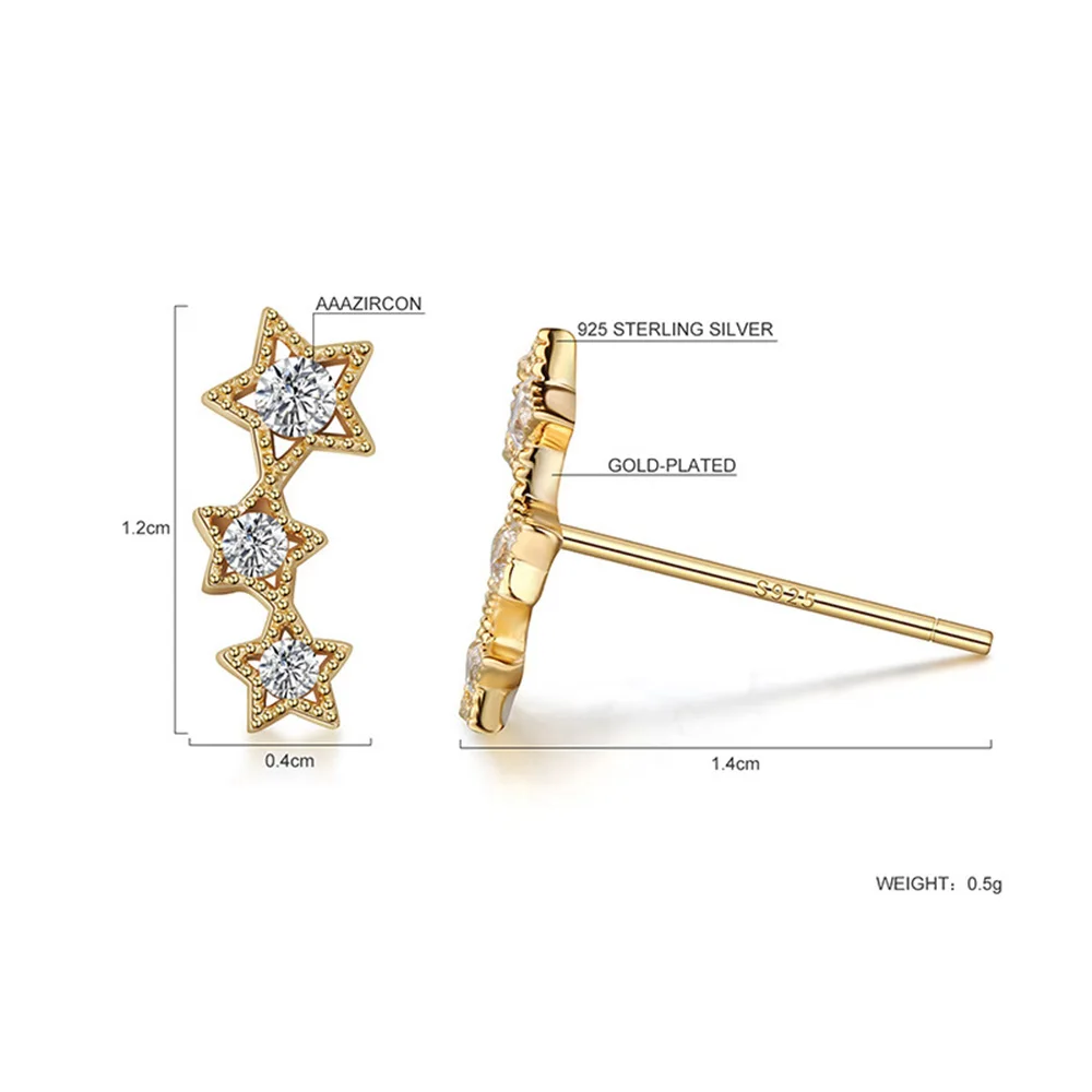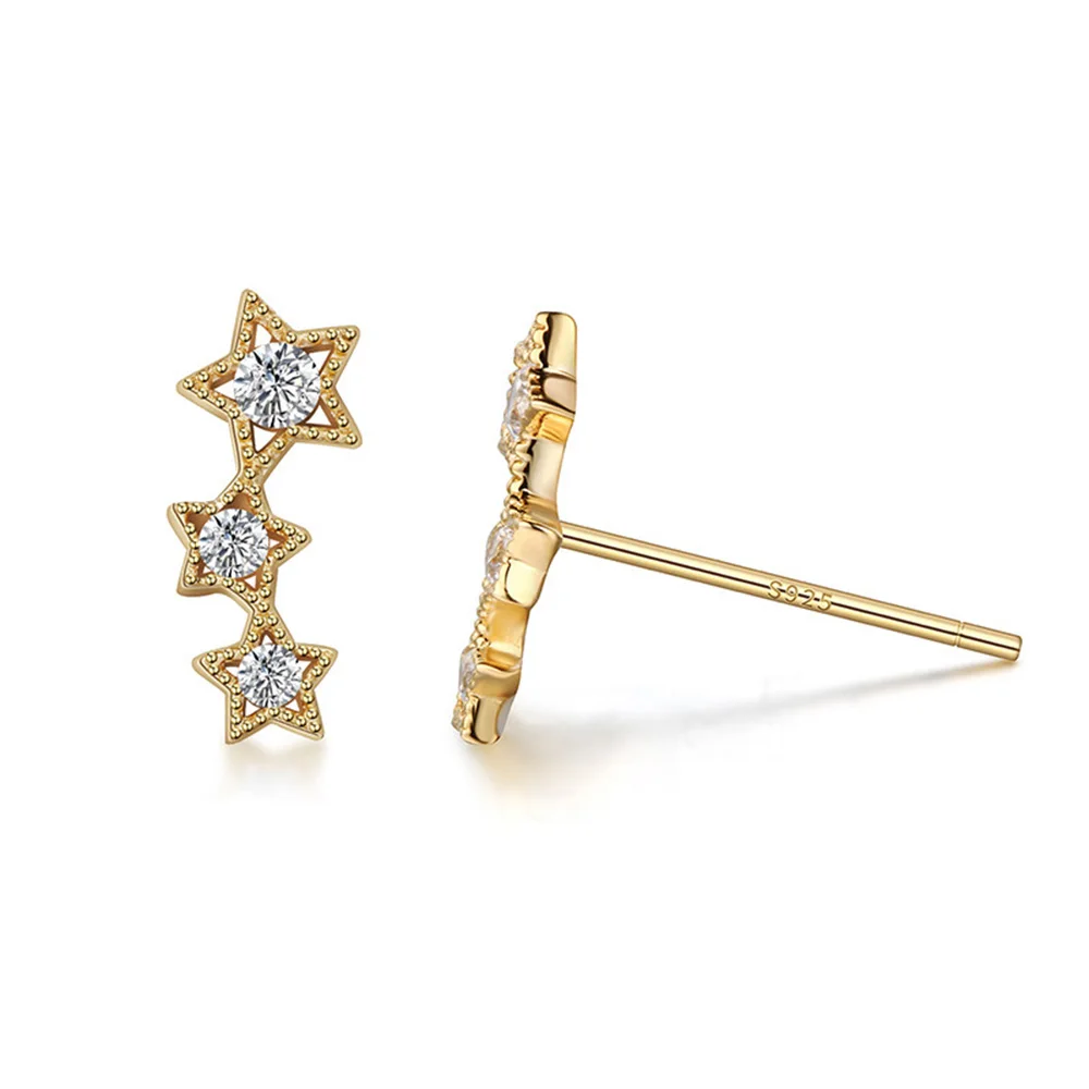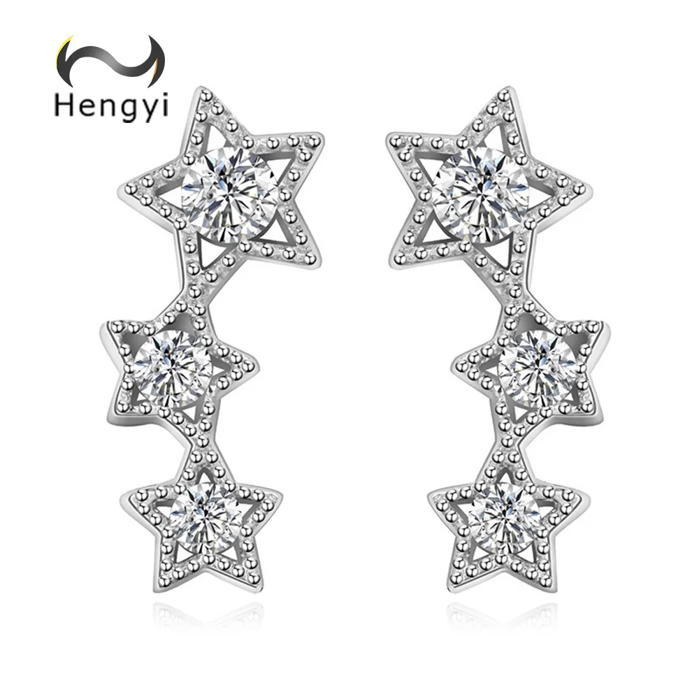 Hengyi Authentic 925 Sterling Silver Sparkling CZ Exquisite Stackable Star Stud Earrings for Women Jewelry Christmas Gift