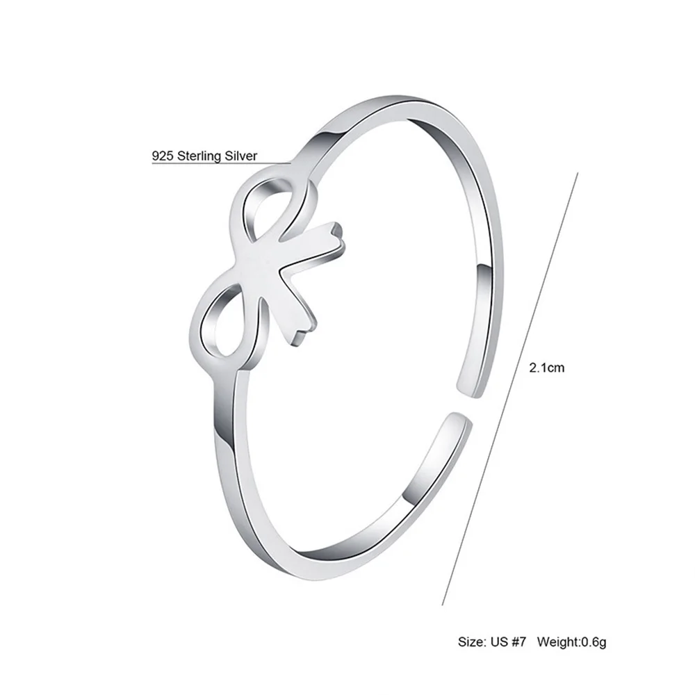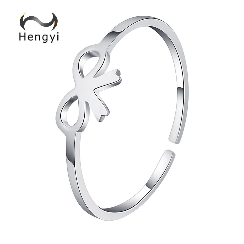 Hengyi Bow Shape 925 Sterling Silver Finger Adjustable Ring for Women Vintage Trendy Style Party Fine Jewelry 2020 Hot Sale
