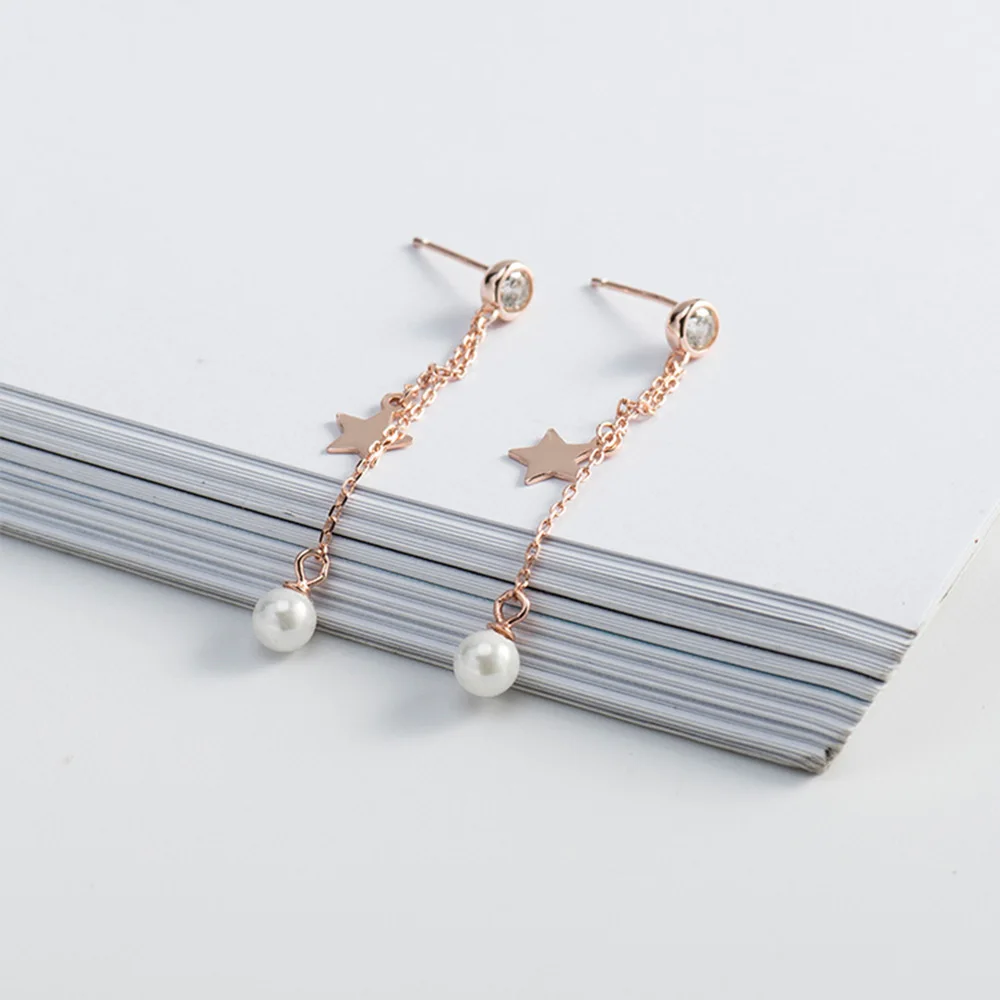 Hengyi Romantic Lovely Star Drop Earrings for Women 925 Sterling Silver Wedding Anniversary Fine Jewelry