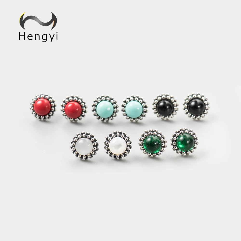 Hengyi Round Multicolor High Quality 925 Stud Earrings for Women Trendy Casual Silver 925 Jewelry