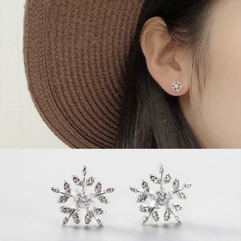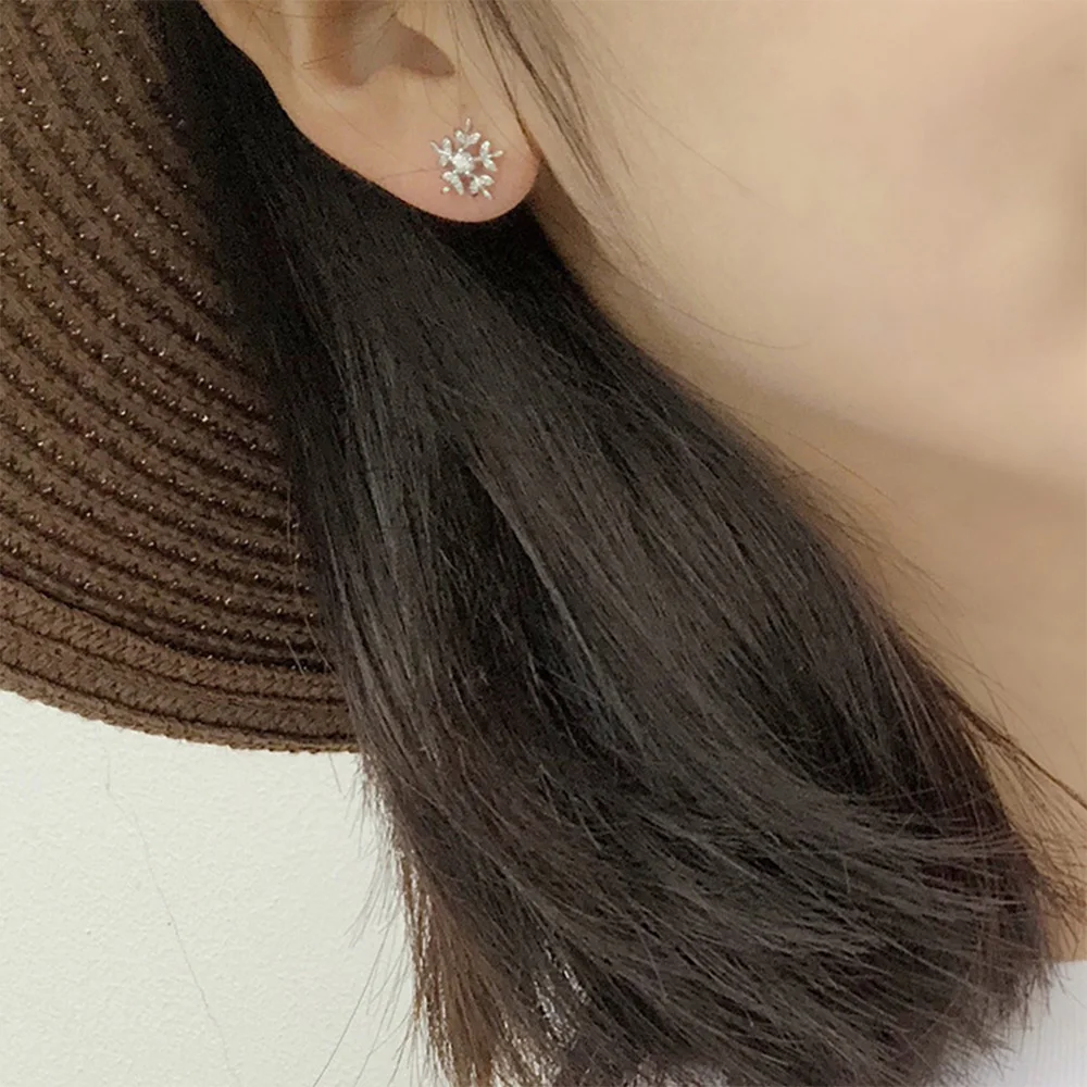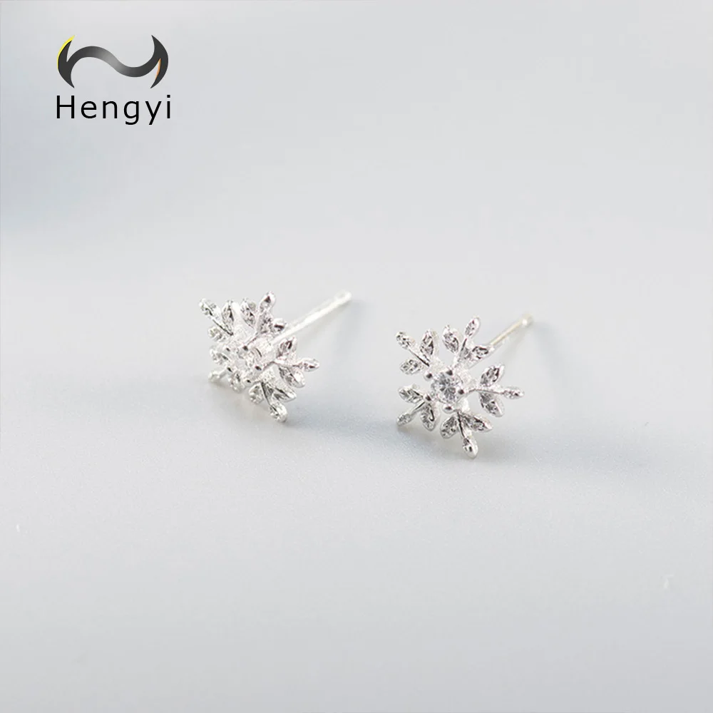 Hengyi Snowflake Shape 925 Sterling Silver Stud Earrings for Women Casual Trendy Style Fine Jewelry