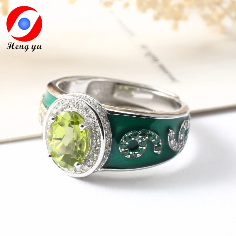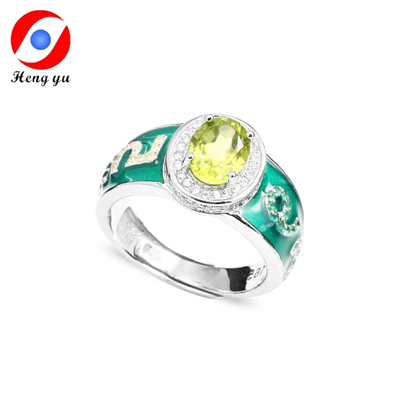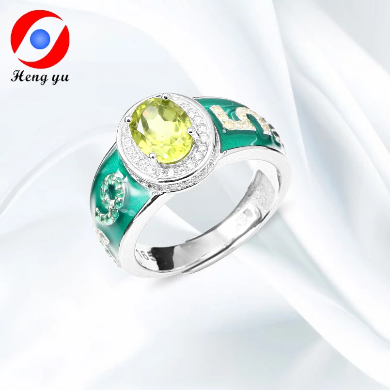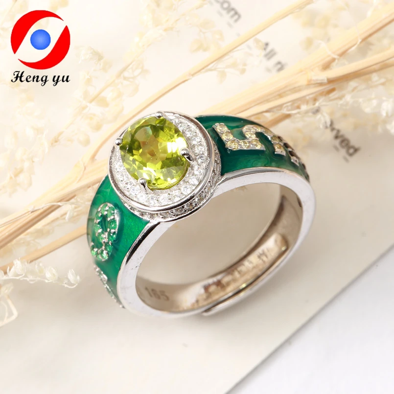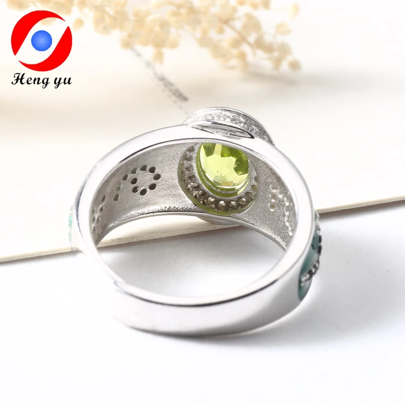 HENGYU Vintage Peridot Ring Women Fine Jewelry 925 Sterling Silver for Ladies Wedding Gift Adjustable Rings Jewellery J0024