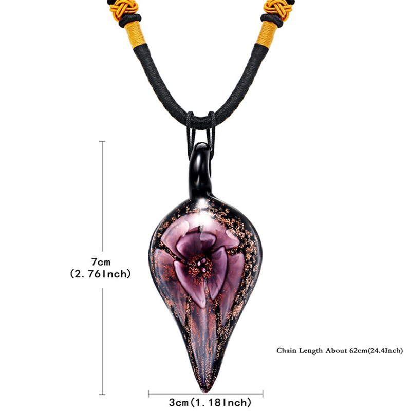 HF JEL Ethnic Glass Big Pendant Necklaces Inner Flower Murano Glass Pendant Necklaces for Women Accessories Sweater Chain