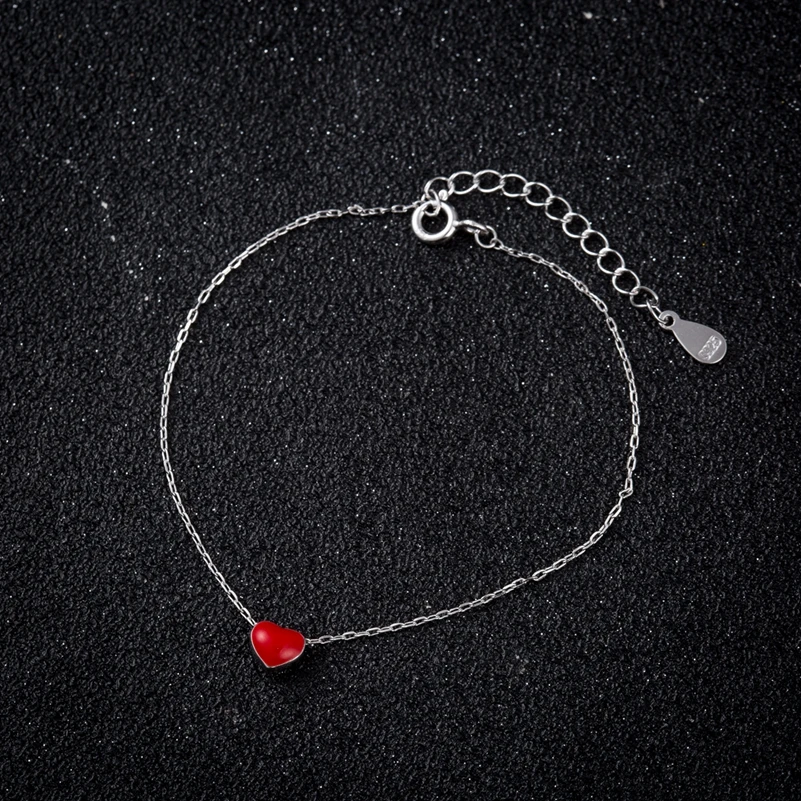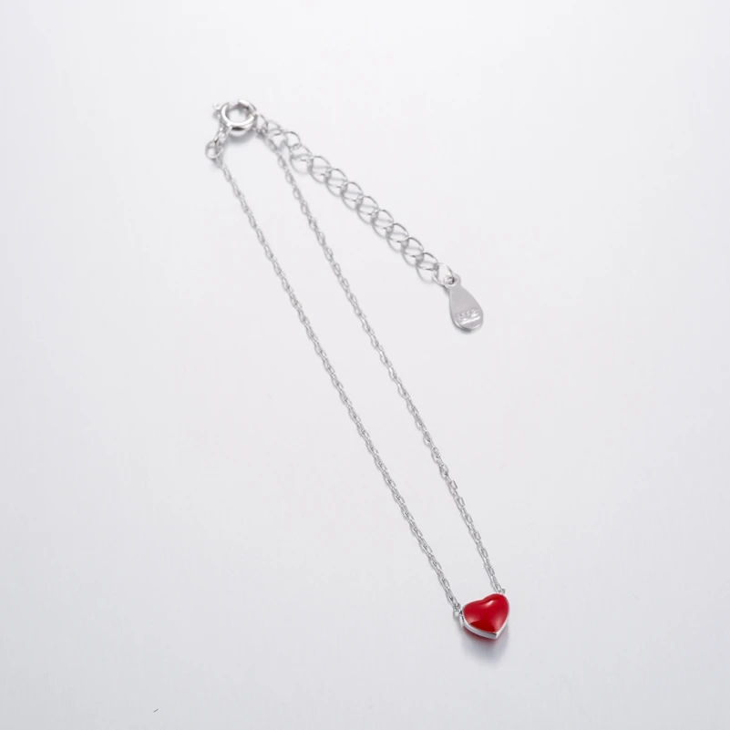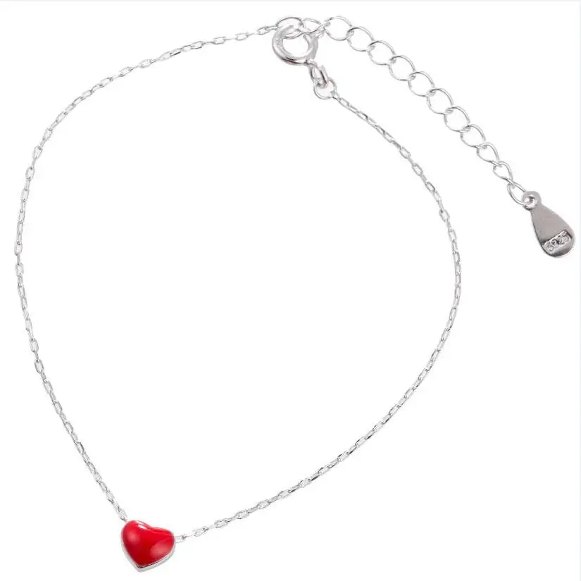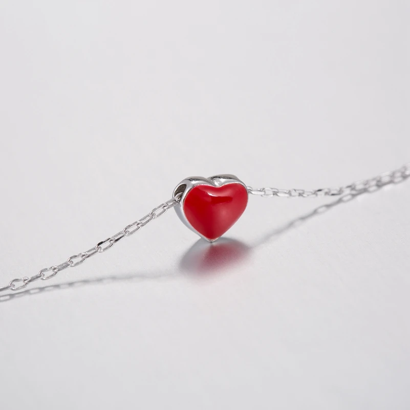 925 Sterling Silver Red Heart Bracelets for Women Girls Jewelry Simple Tiny Charms Bracelet Gift for Girlfriend Jewelry