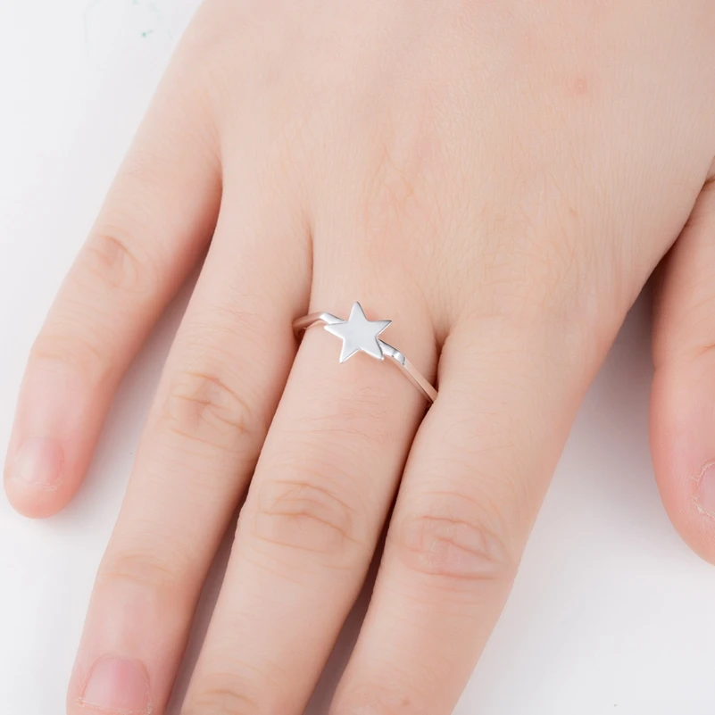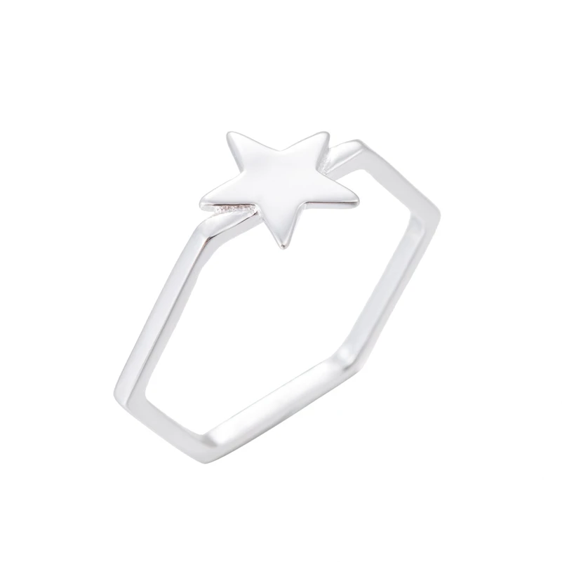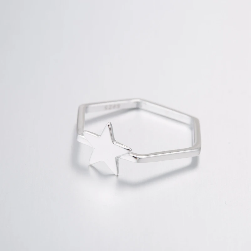 925 Sterling Silver Rings for Women Girls Tiny Star Geometric Hexagon Design Fashion Silver Jewelry Trendy Ring for Gift