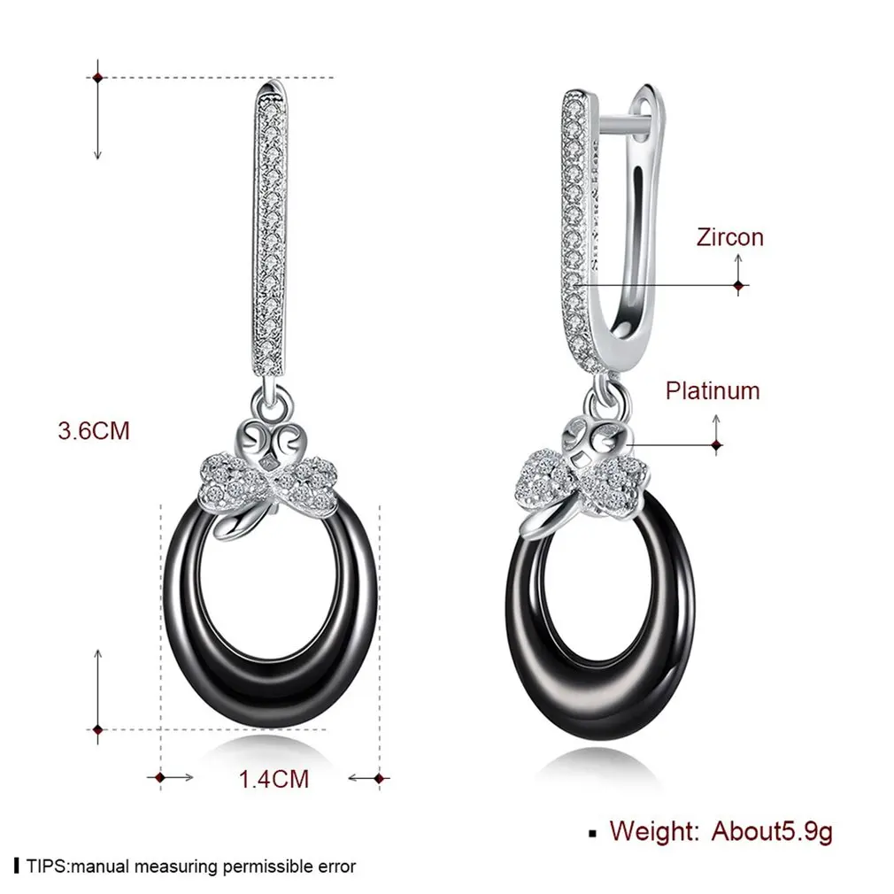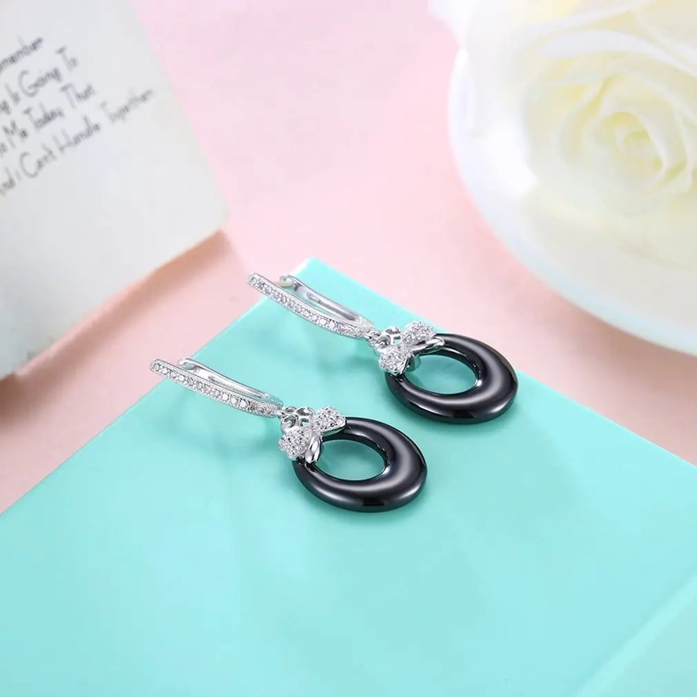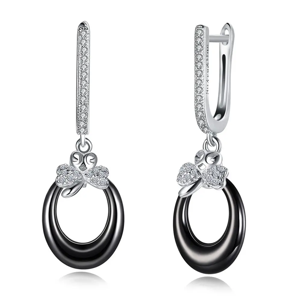 High Class 925 Silver With Zircon Ceramic Earrings Simple Bridal Jewelry Long Style Eardrops Earrings fit Wedding Engagement