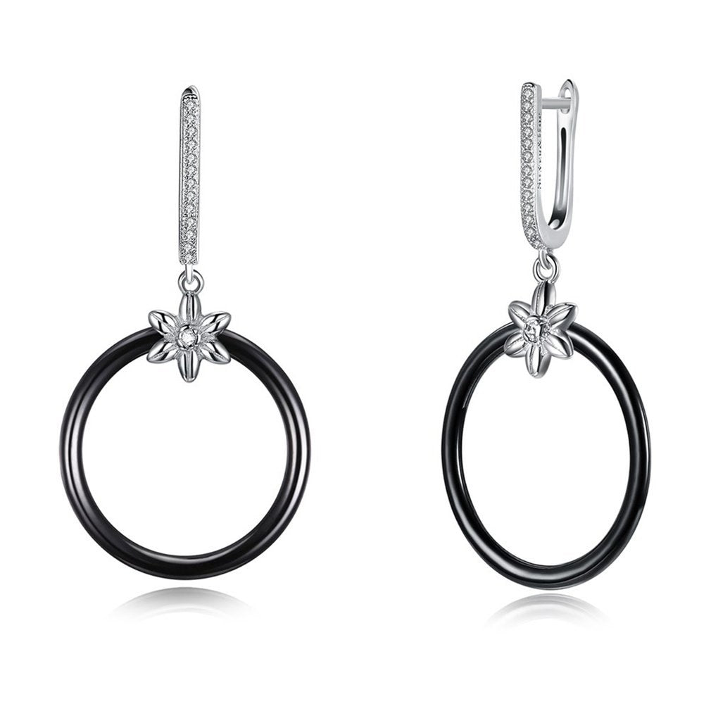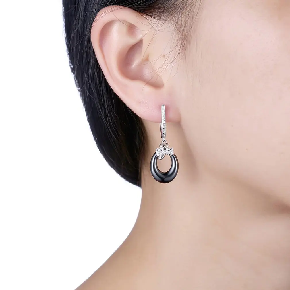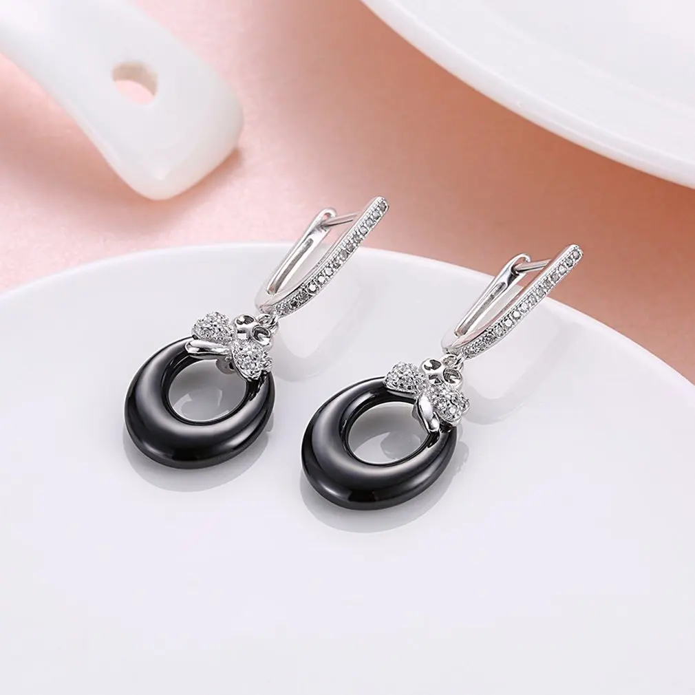 High Class 925 Silver With Zircon Ceramic Earrings Simple Bridal Jewelry Long Style Eardrops Earrings fit Wedding Engagement