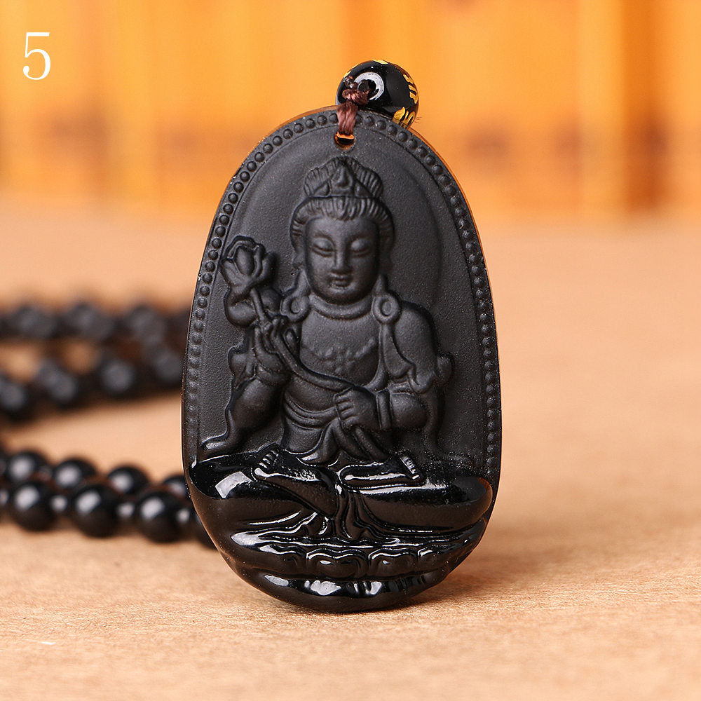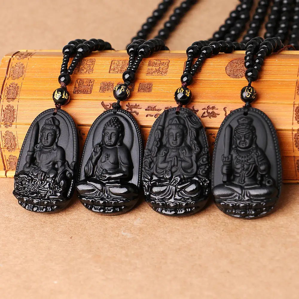 High Quality Unique Black Obsidian Carved Buddha Happy Amulet Pendant Necklace For Women Men Pendant Jewelry head pendant Buddha