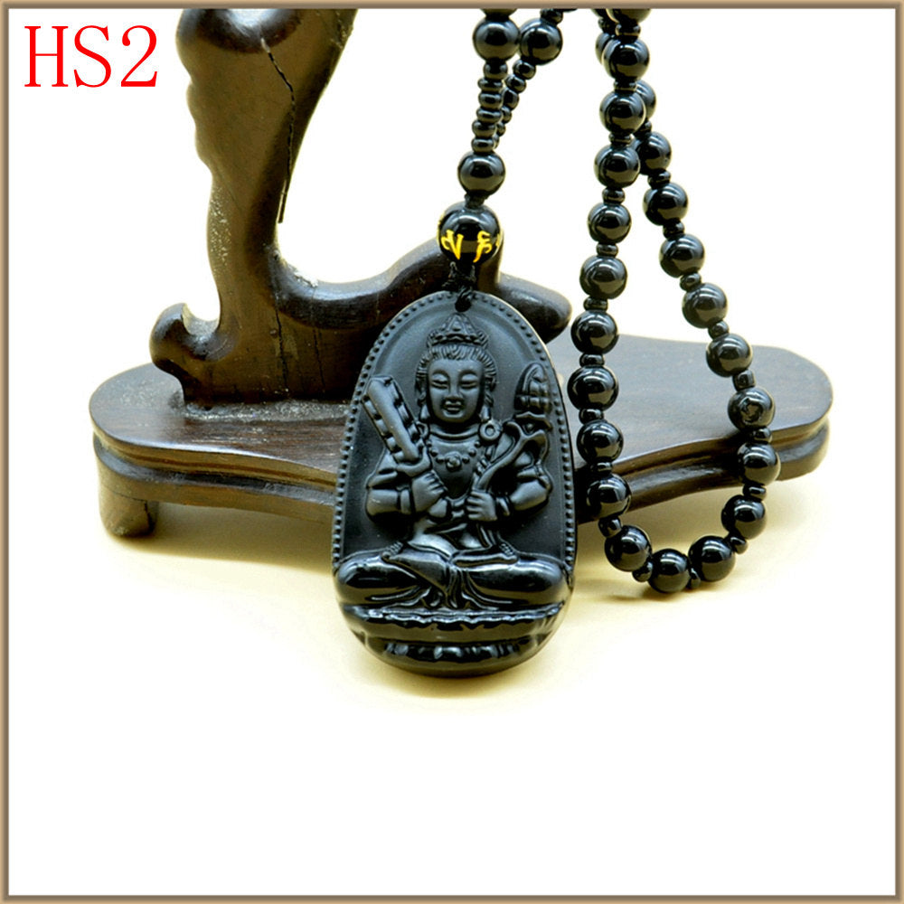4pcs Nature Black Obsidian Carved Buddha Amulet Pendant Necklace Women Men beaded curtain Natural Obsidian Sculpture
