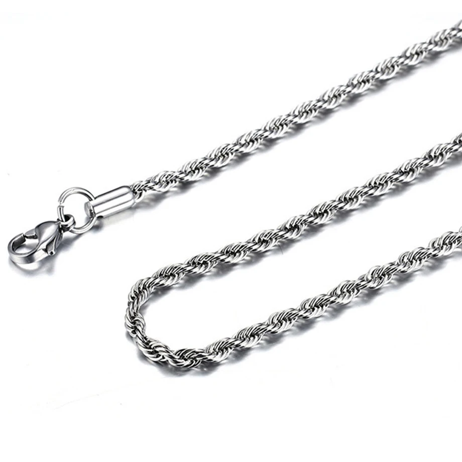 Hip Hop Chains For Men Women 3/5mm Gold Silver Color Stainless Steel Twisted Rope Chain Necklace Jewelry