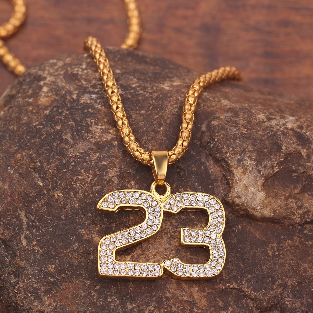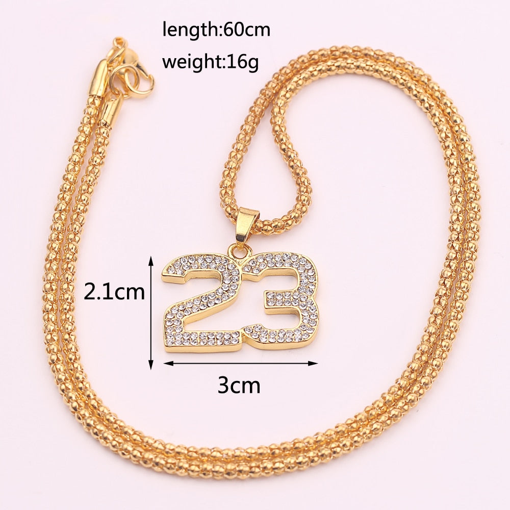 Hip Hop Crystal Basketball Legend Number 23 Pendant Necklaces Men Bling Cuban Chain Necklace Lucky Jewelry For Man Boy Fans Gift