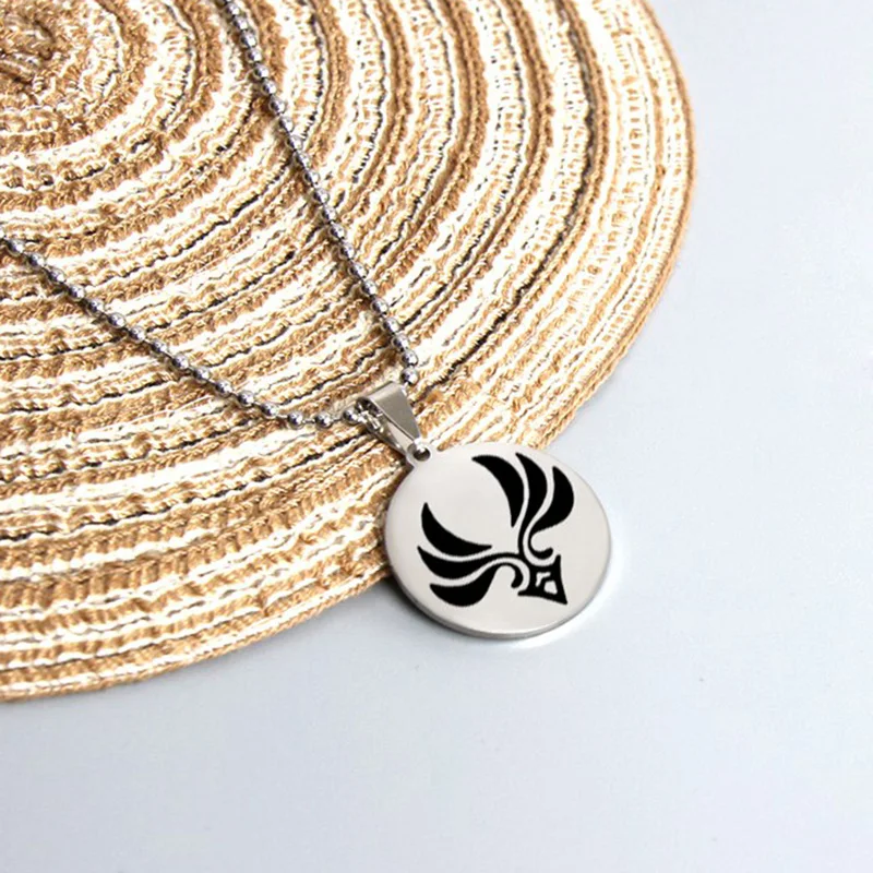 Hip Hop Genshin Impact Eye of God Stainless Steel Necklace Grass Water Wind Thunder Fire Rock Ice Element Cosplay Jewelry Gift