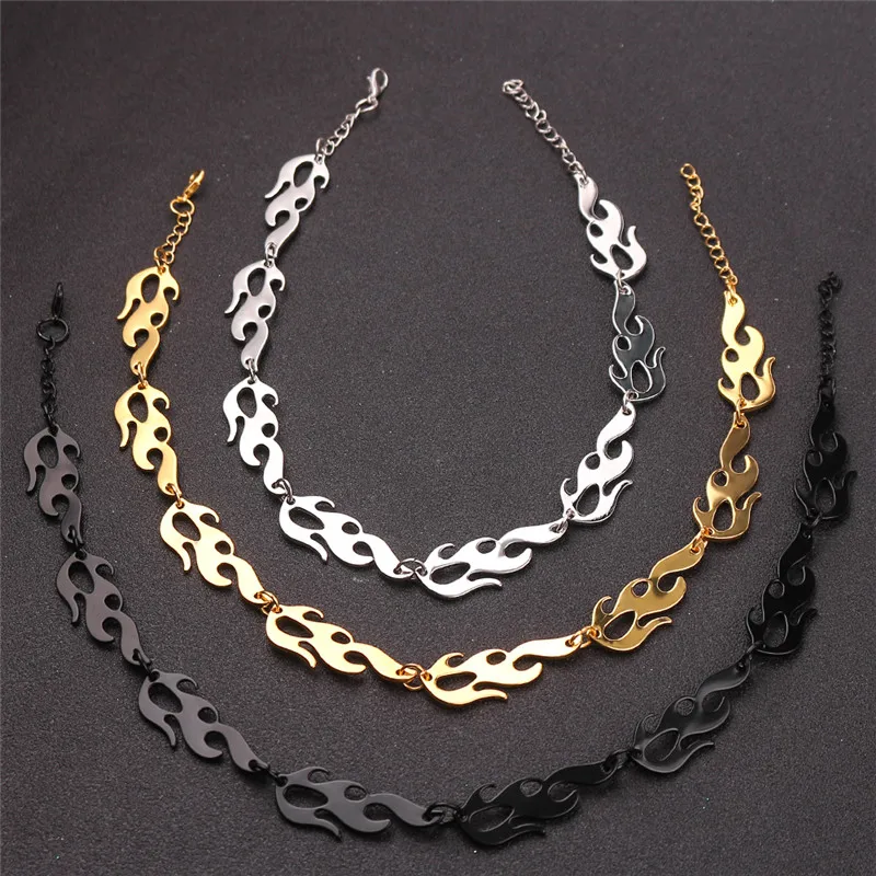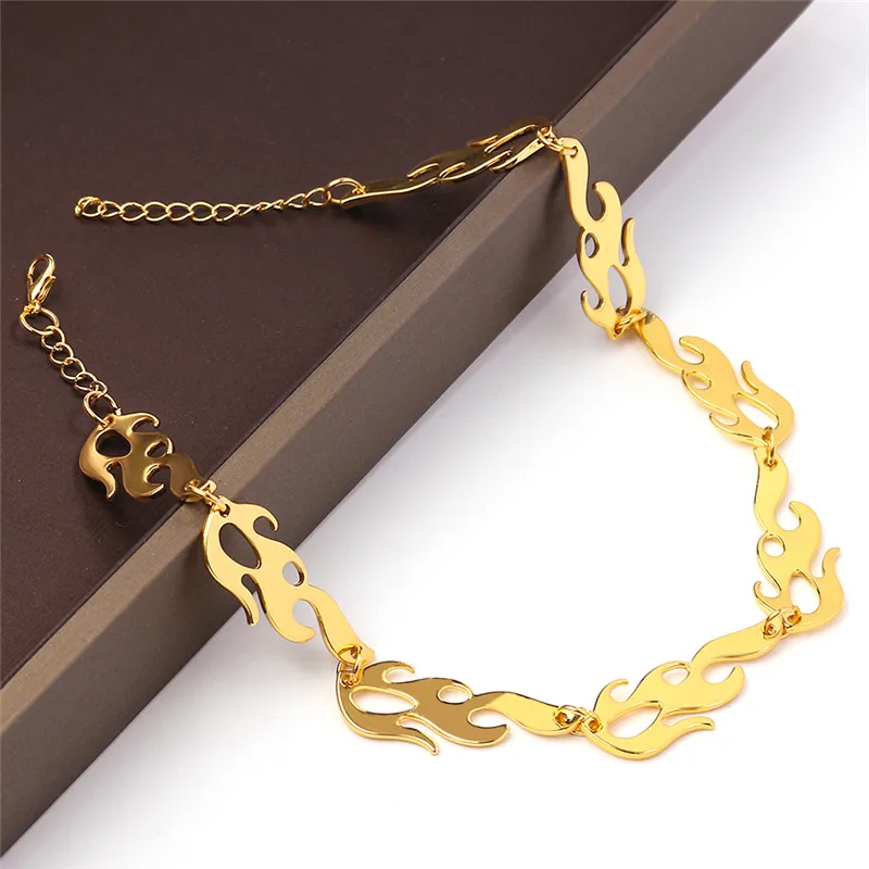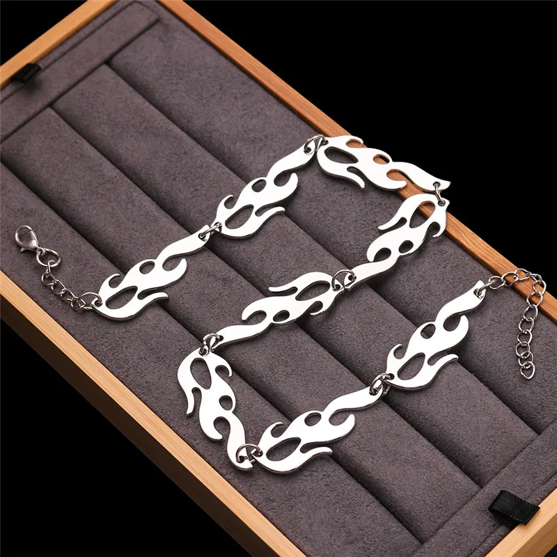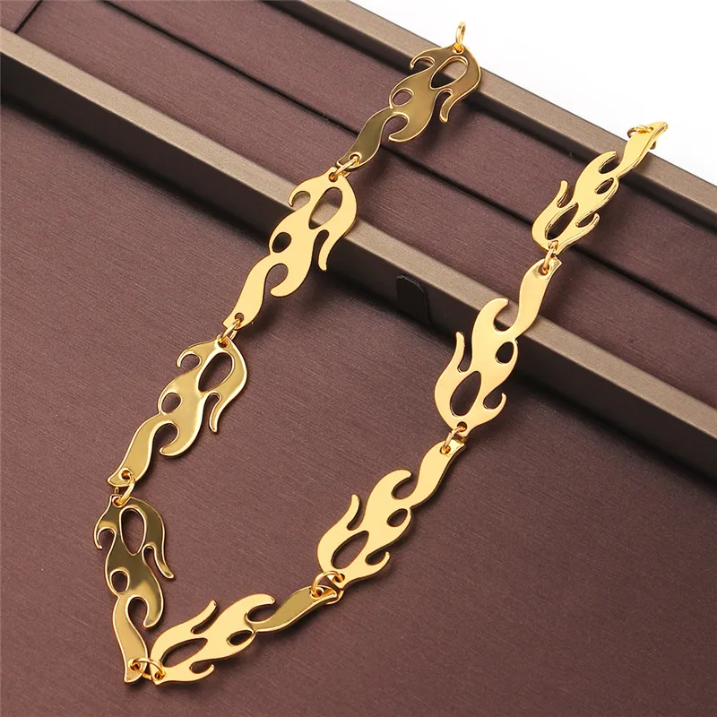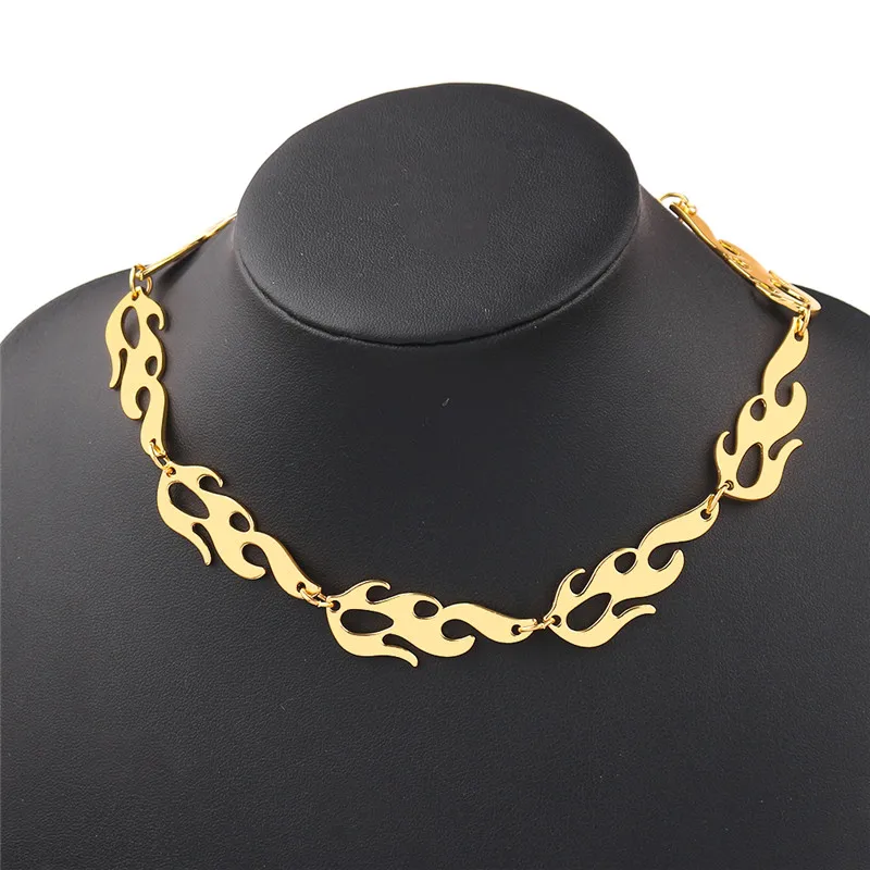 Hip Hop Harajuku Streetwear Flame Necklace Punk Rock Chain Necklaces Gold Color Choker Necklace Adjustable Chain For Unisex
