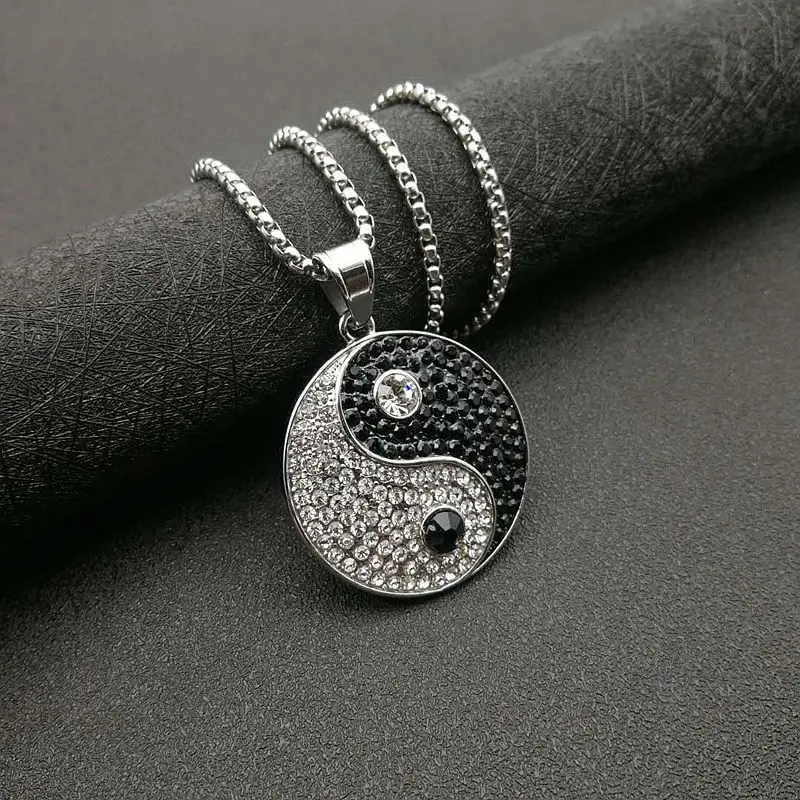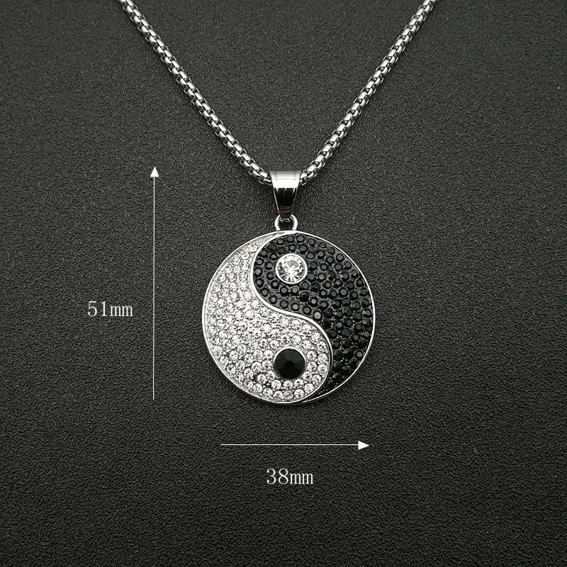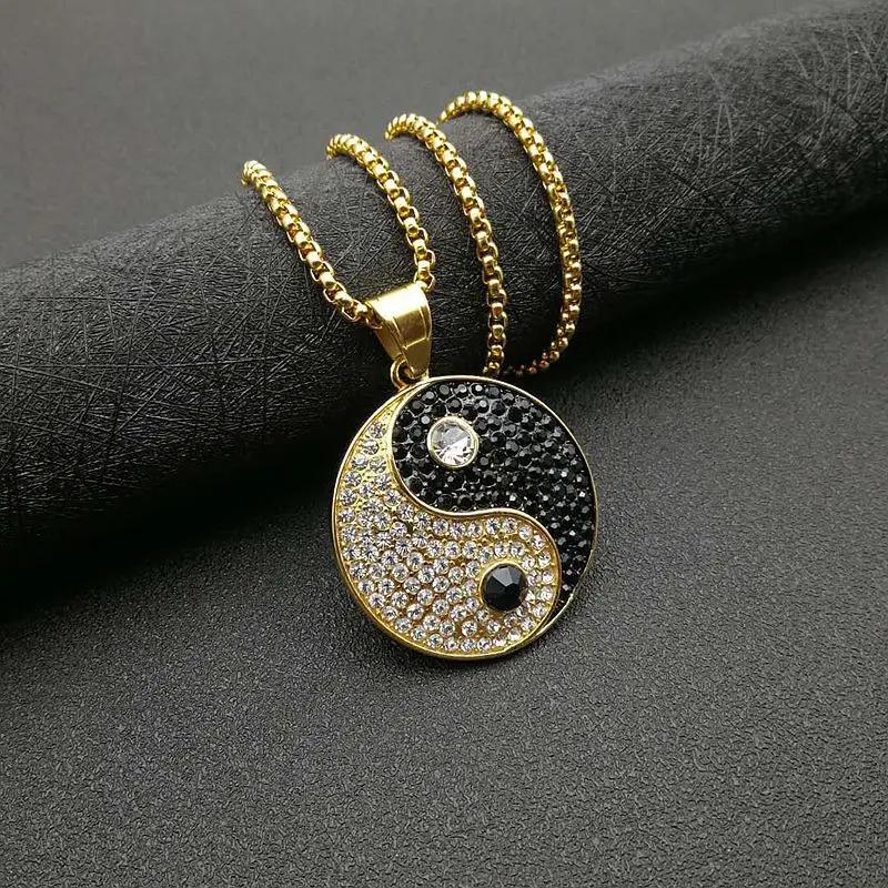 Hip Hop Iced Out Bling Gossip Yin Yang Aumlet Pendant Necklace Gold Silver Color Stainless Steel Chains For Women Men Jewelry