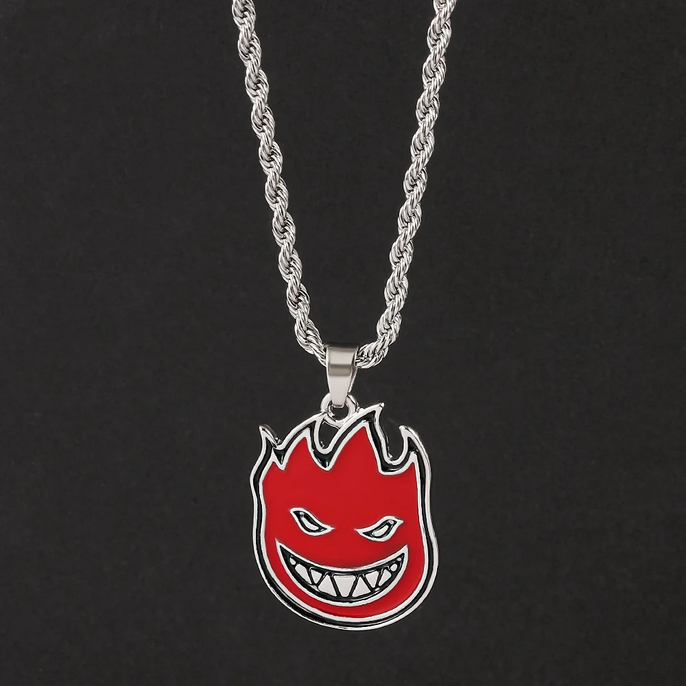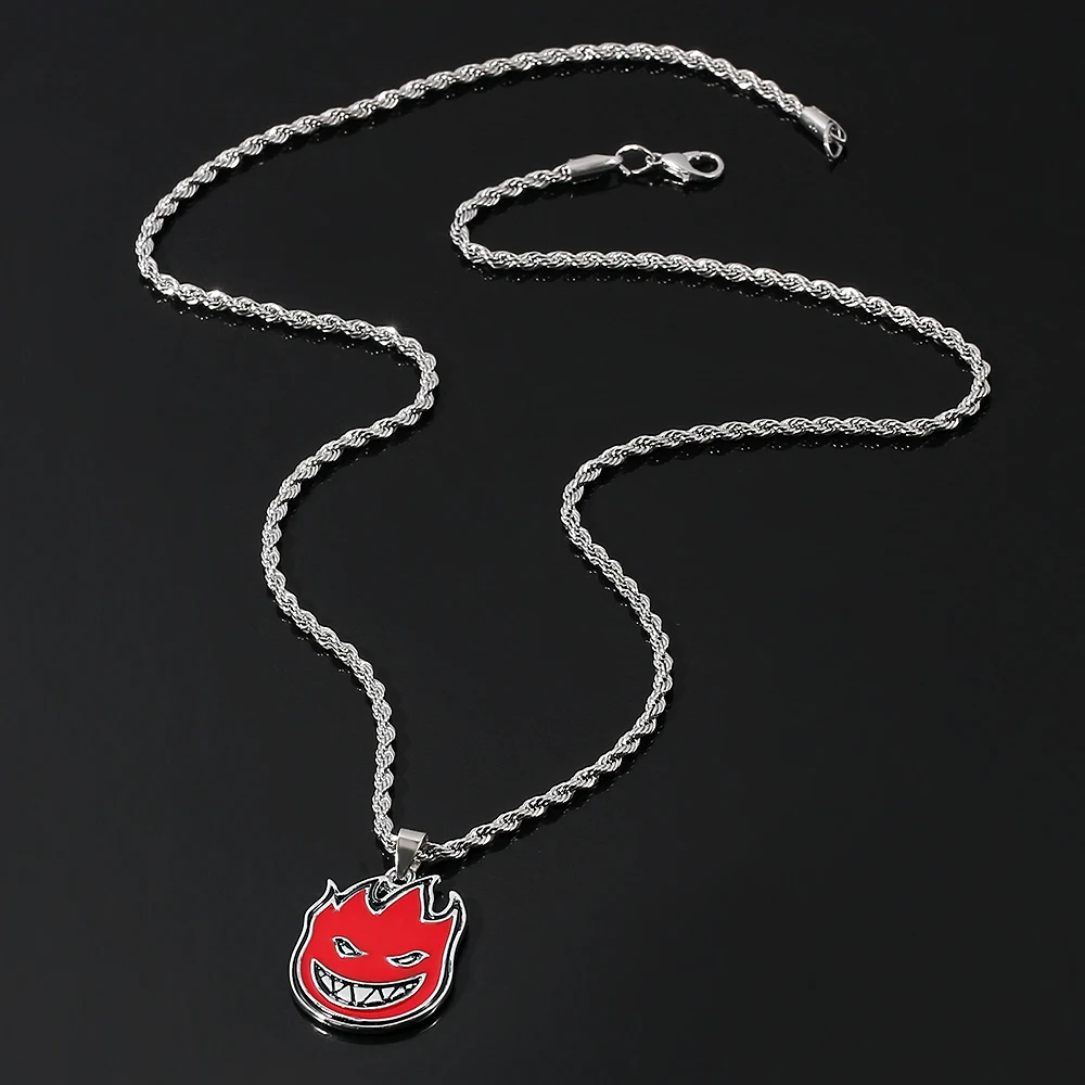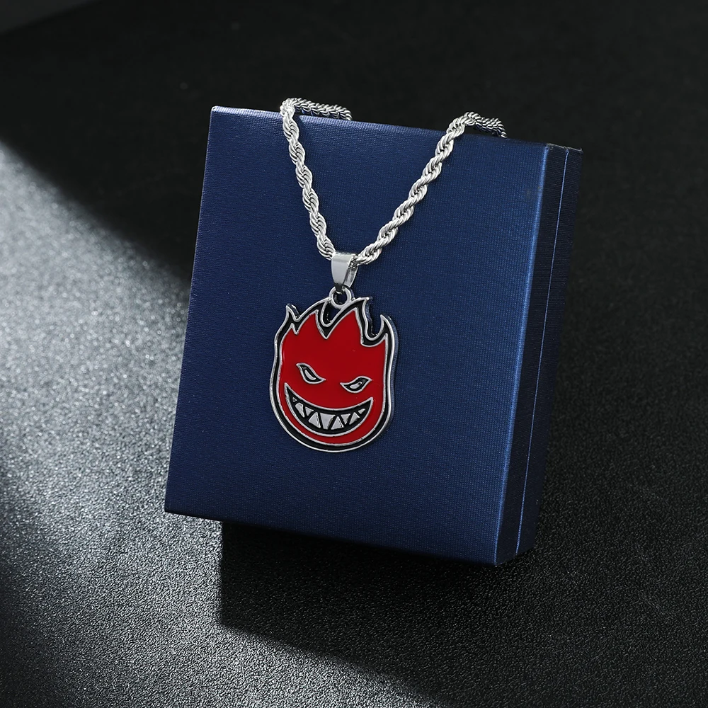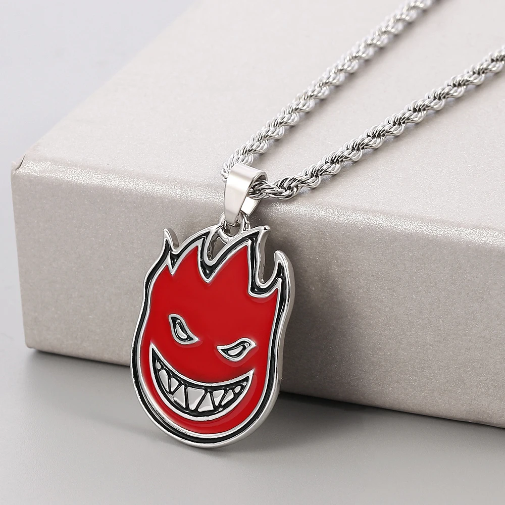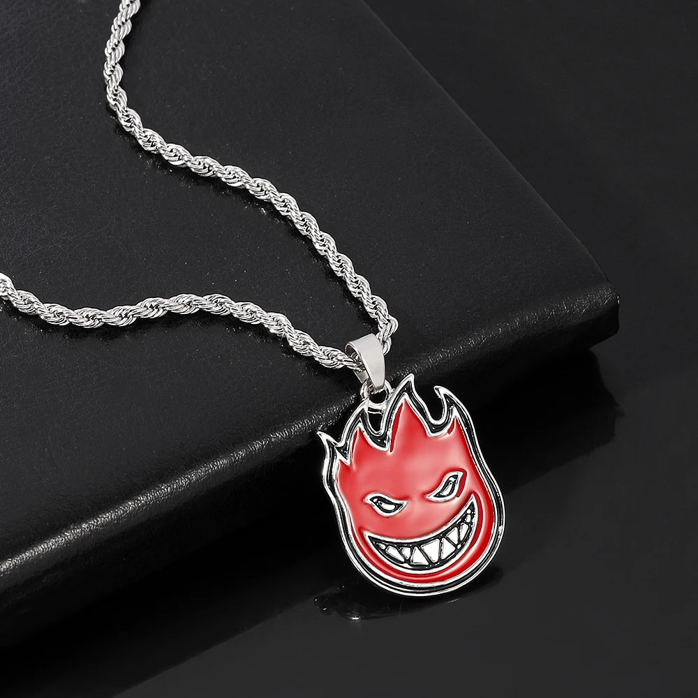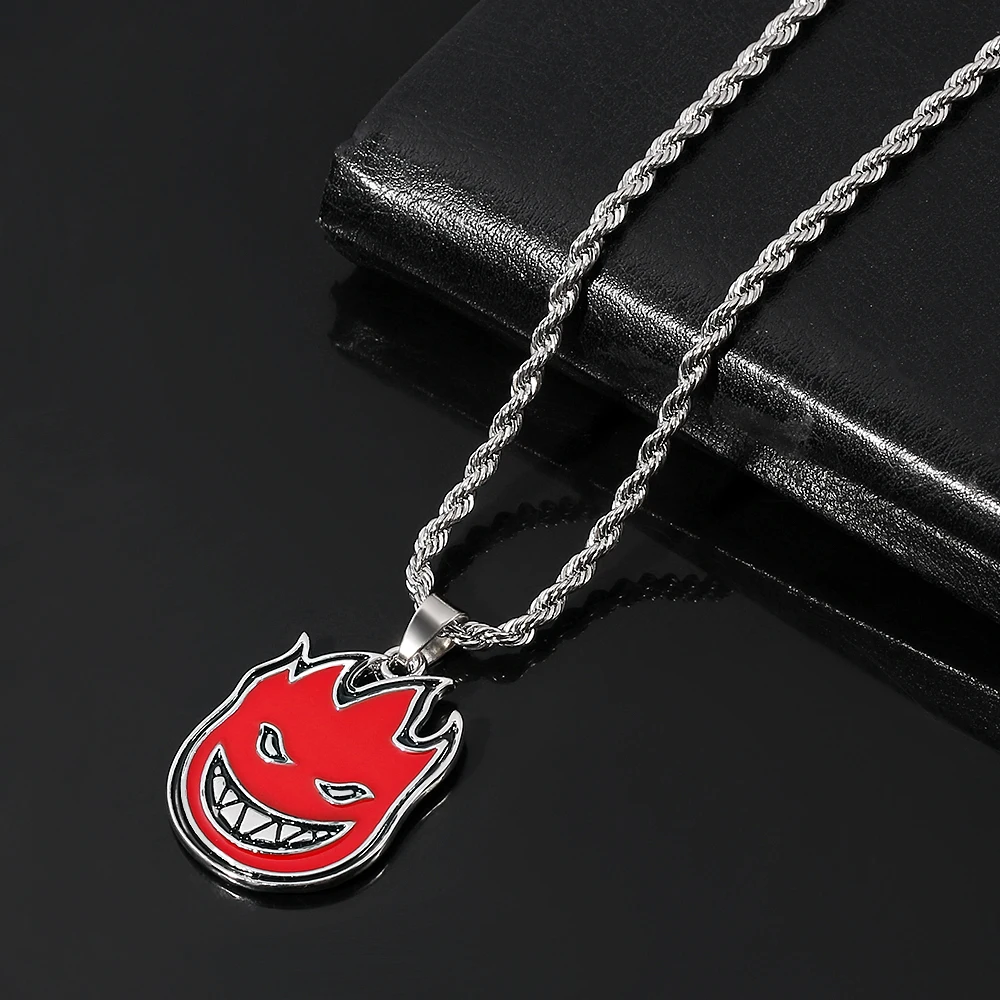 Hip-hop Magic Flame Face Pendant Punk Red Metal For Man Collar Necklace Punk Rock Charm Bar Nightclub Jewelry Accessories