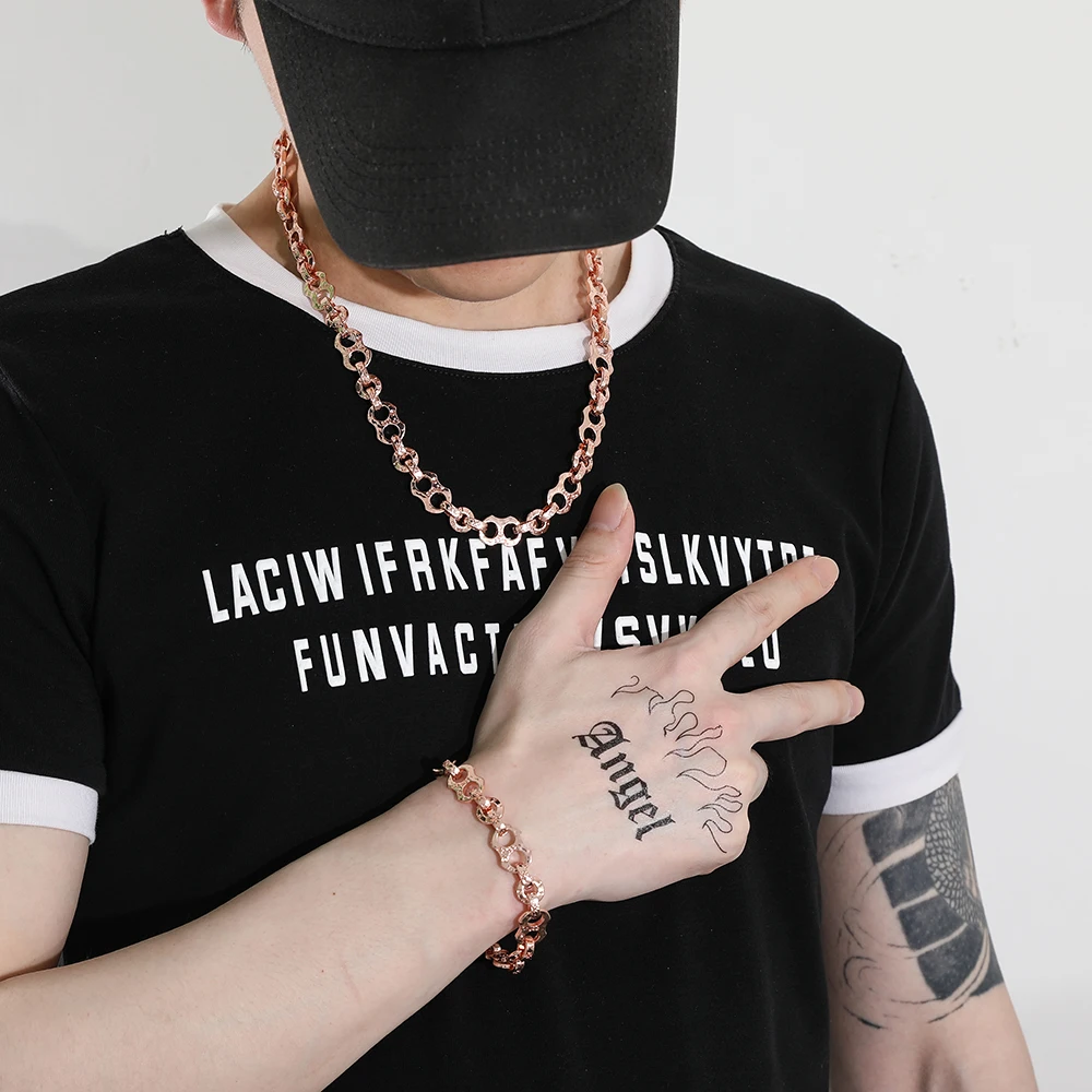 Hip-hop Motorcycle Handcuffs Chain Necklace Choker Charm Male Collar Metal Chain Jewelry Rock Party Accessories Gifts