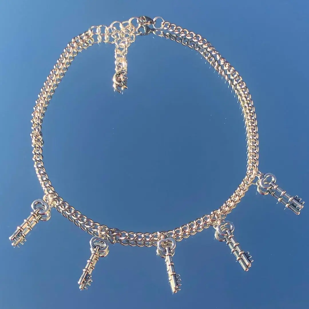 Hip-hop Punk Butterfly Key Pendant Necklace Harajuku Vintage Multiple Keys Necklaces For Women Men Jewelry