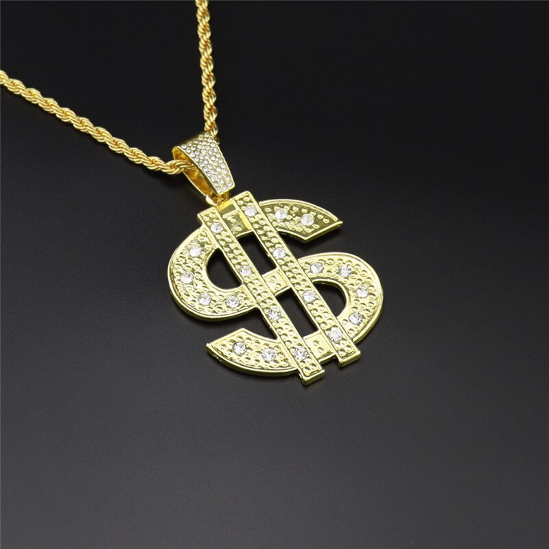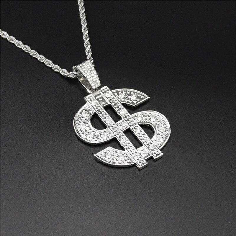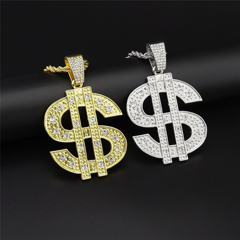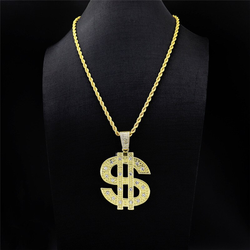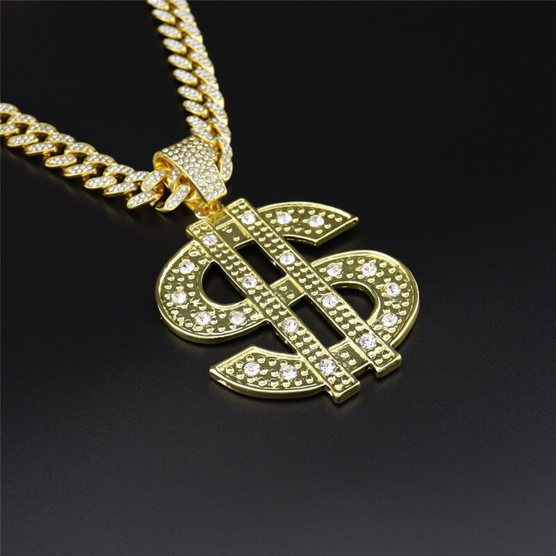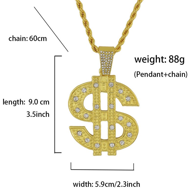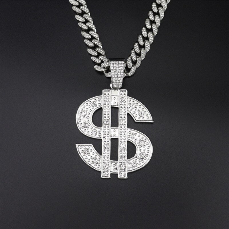 Hip Hop Punk Large US Dollar Money Sign Pendant With Cuban Chain Choker Necklace For Men Women