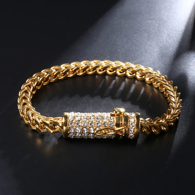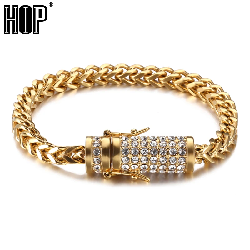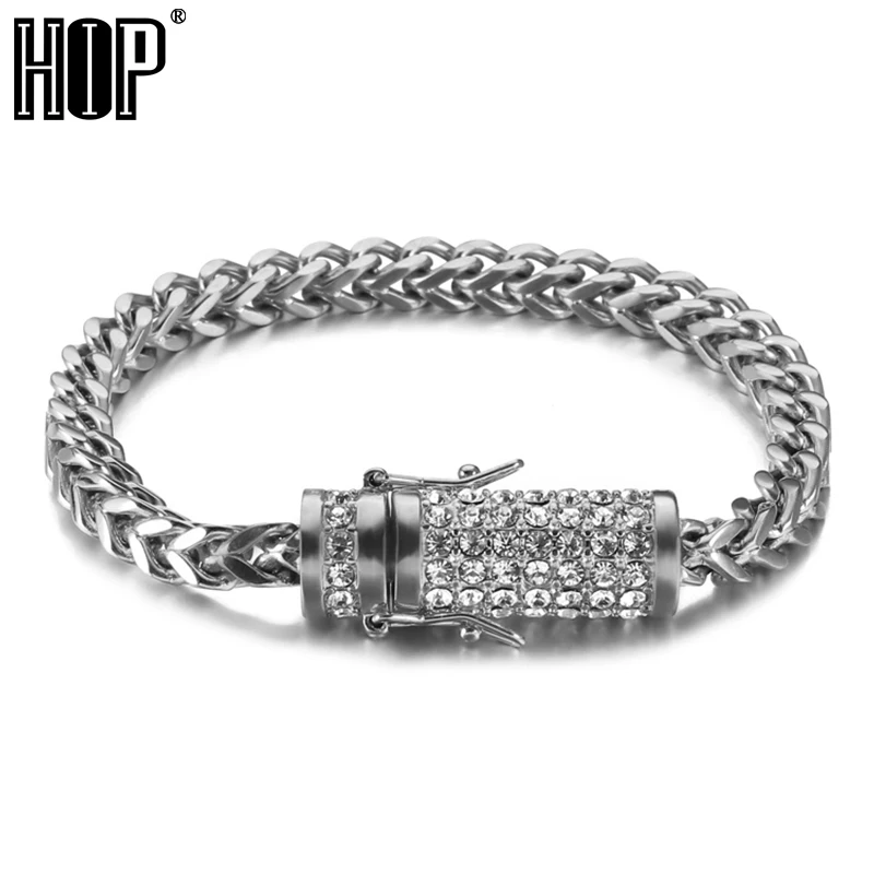Hop Rapper Bracelet Bling Iced Out Rhinestone Clasp Gold Silver Stainless Steel Franco Cuban Box Link Chain Bracelet Jewelry