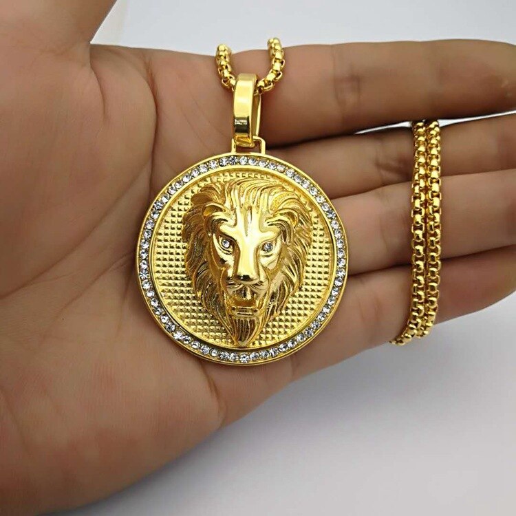 Hip Hop Stainless steel Jewelry Iced Out Gold Bling Lion Head Pendant Men Necklace Filled For Men Gift Drop shipping