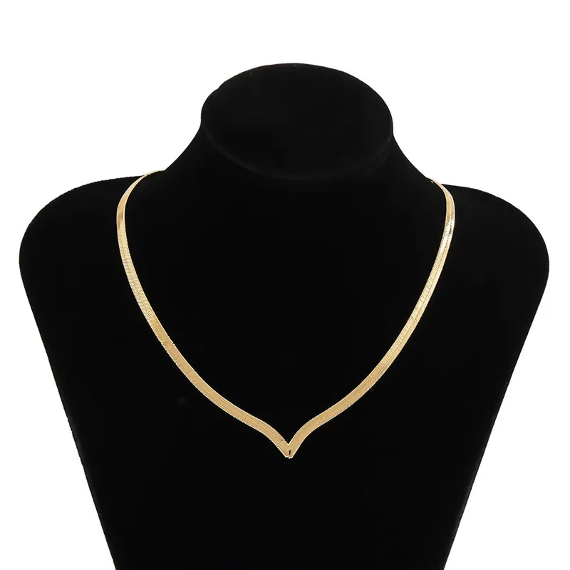Hip Hop Street Shooting Simple Metal Snake Bone Chain Necklace Trend Cold Wind Temperament V-shaped Fine Necklace Female Jewelry