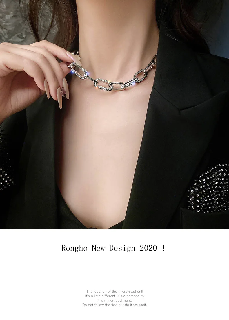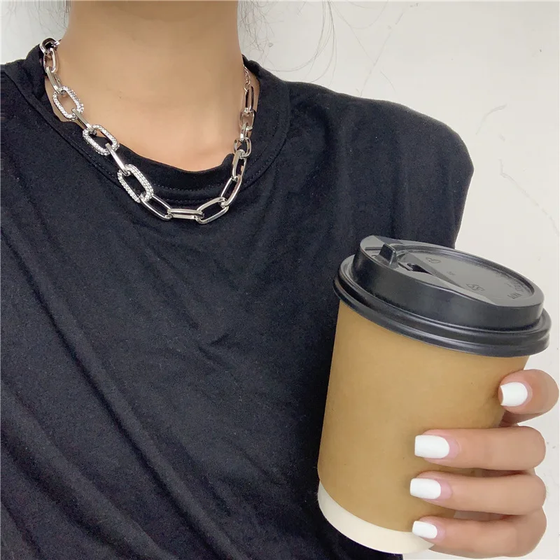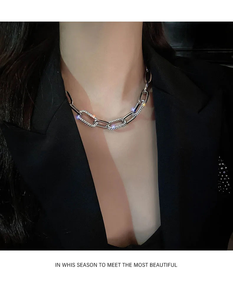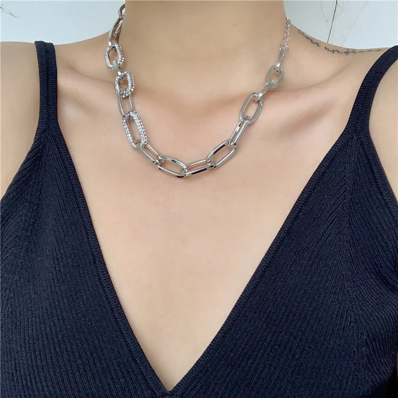 Hiphop Crystal Chain Chokers Necklaces for Women Hyperbole Statement Necklace Chunky Chains Necklace Rock Party Jewelry 2021