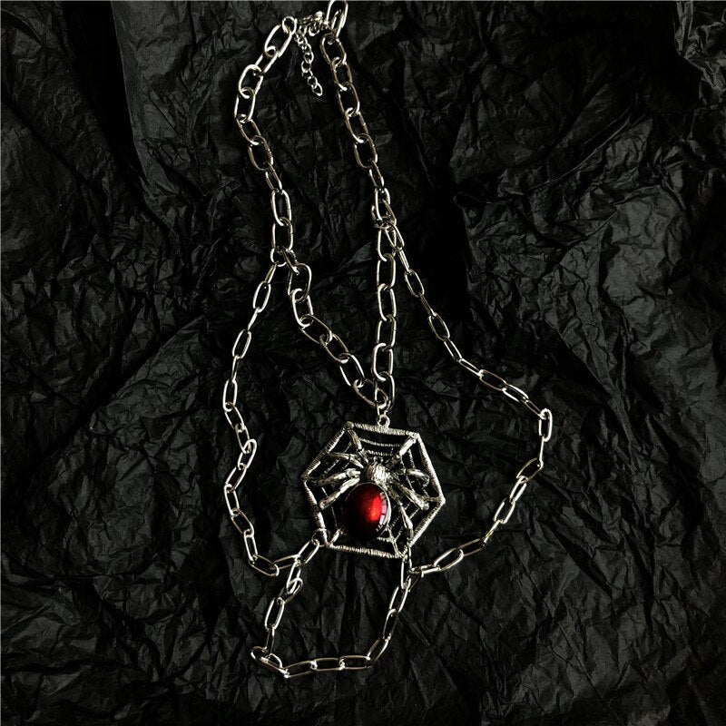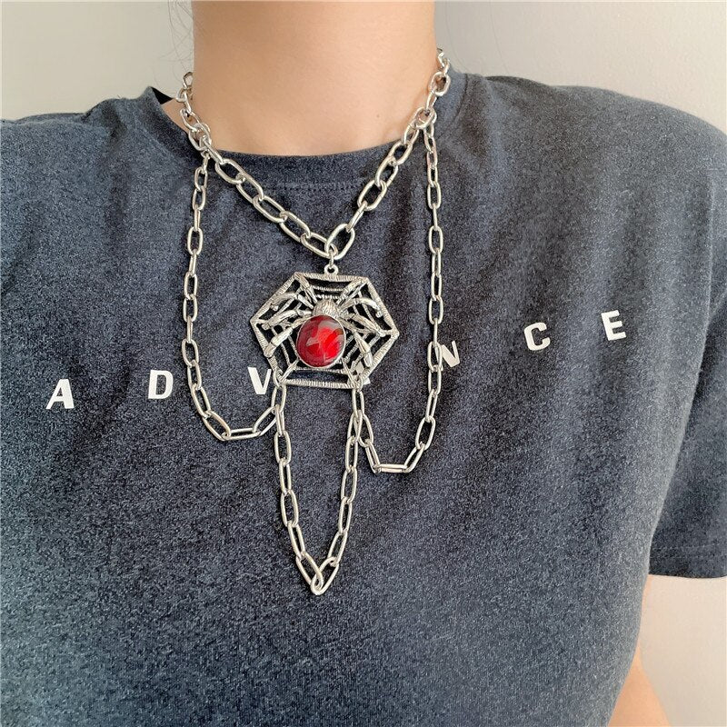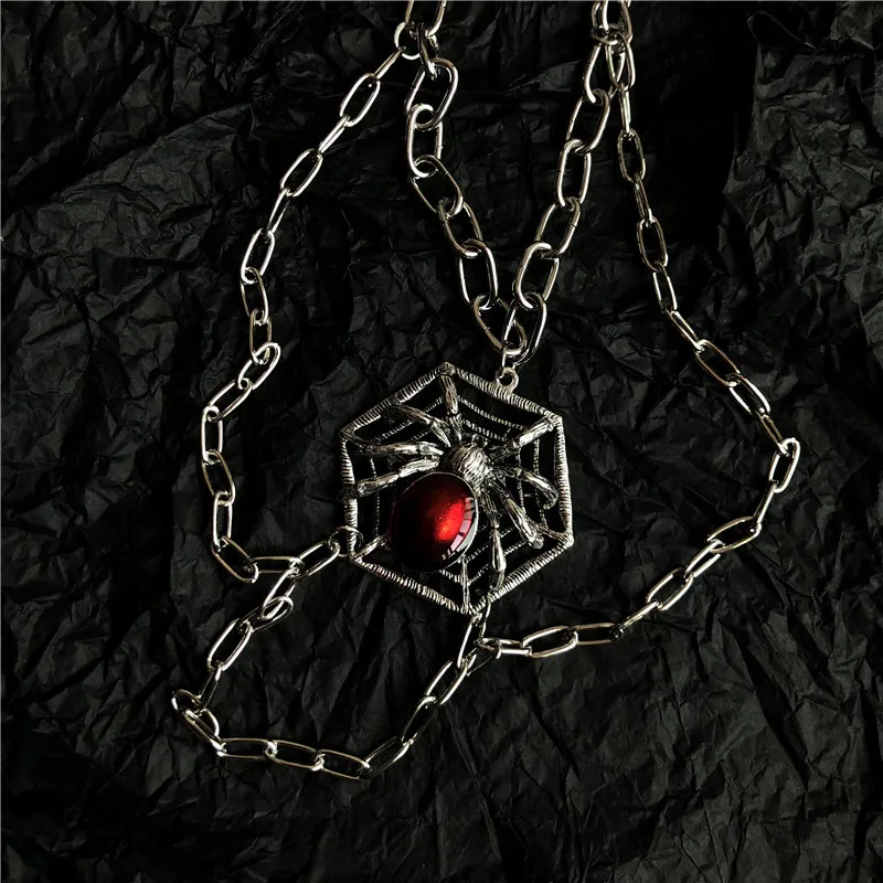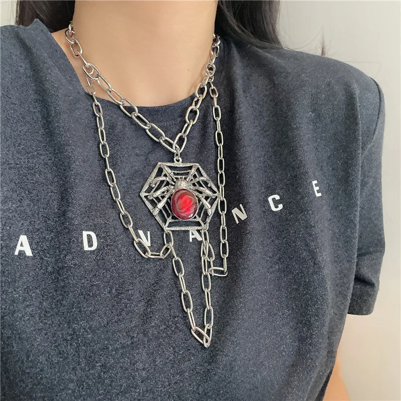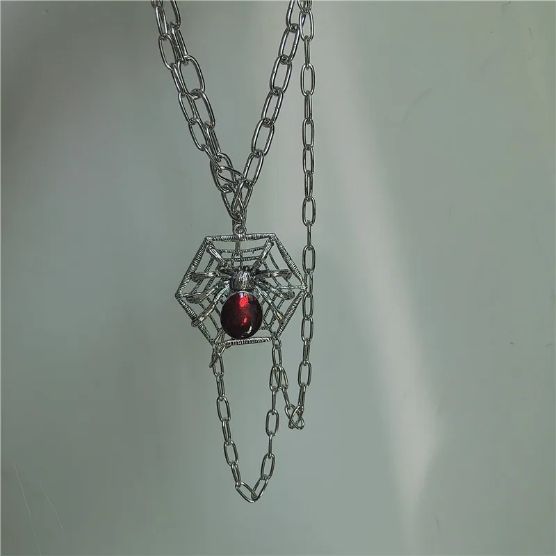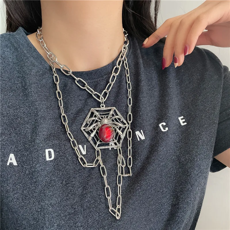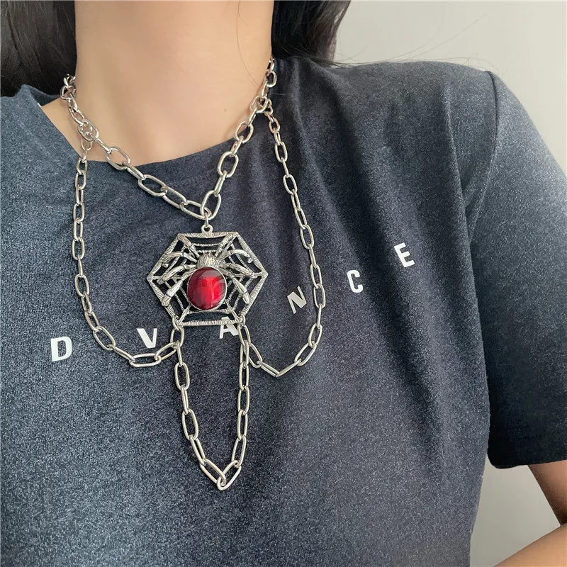 Hiphop Crystal Spider Chokers Necklaces for Women Halloween Punk Jewelry Multi Chain Tassel Pendant Necklace Rock Bijoux