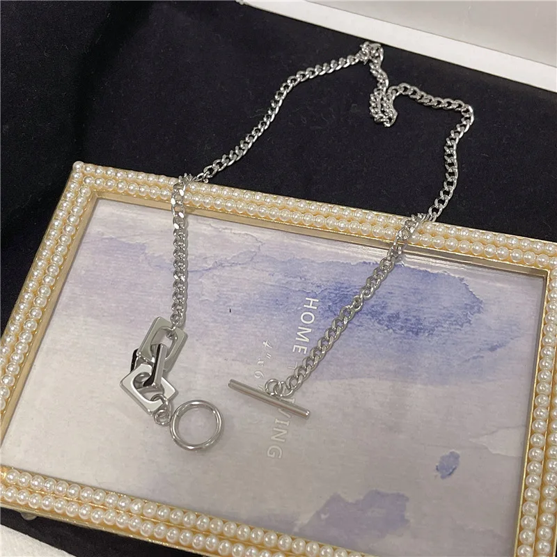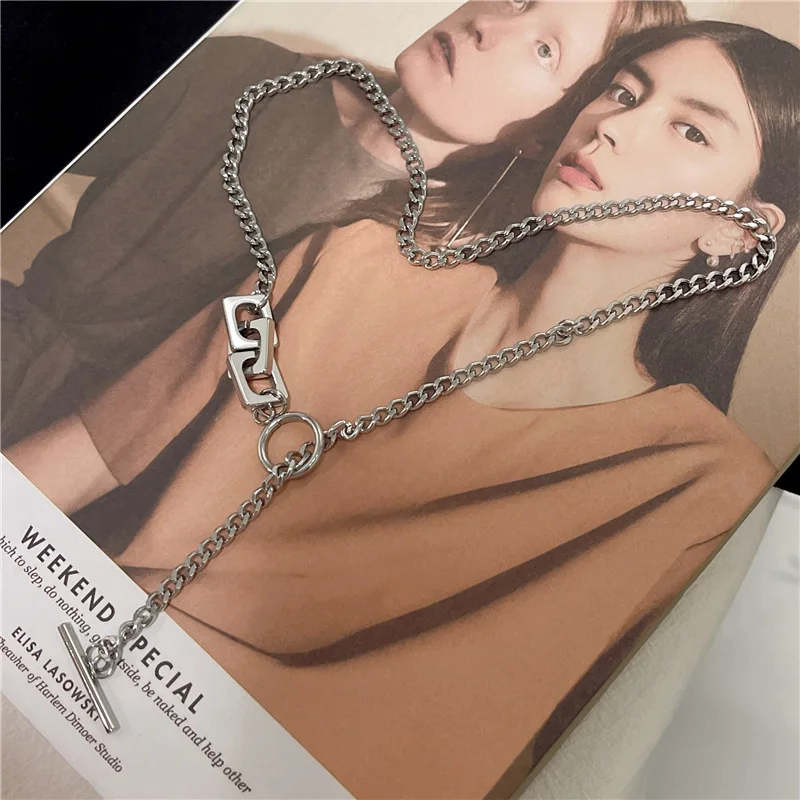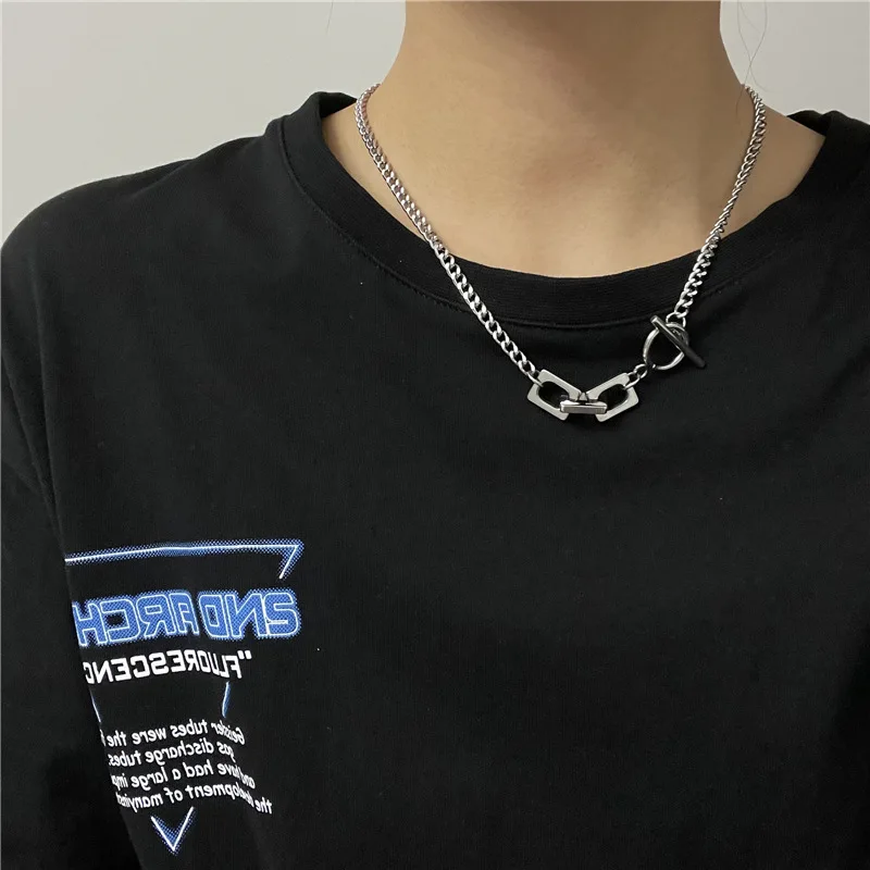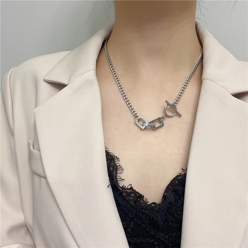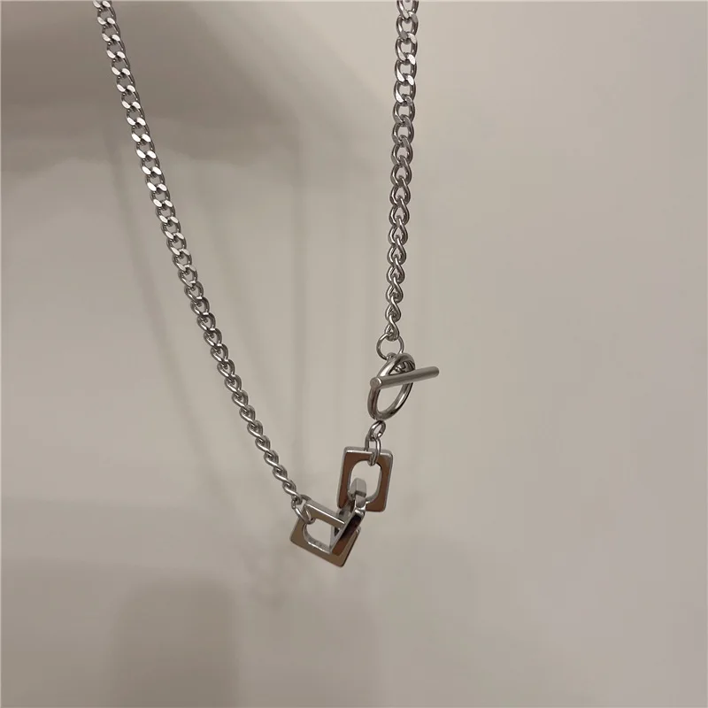 Hiphop OT Clasp Chokers Necklaces for Women Men Jewelry Vintage Metal Square Pendant Necklace Titanium Bijoux 2021