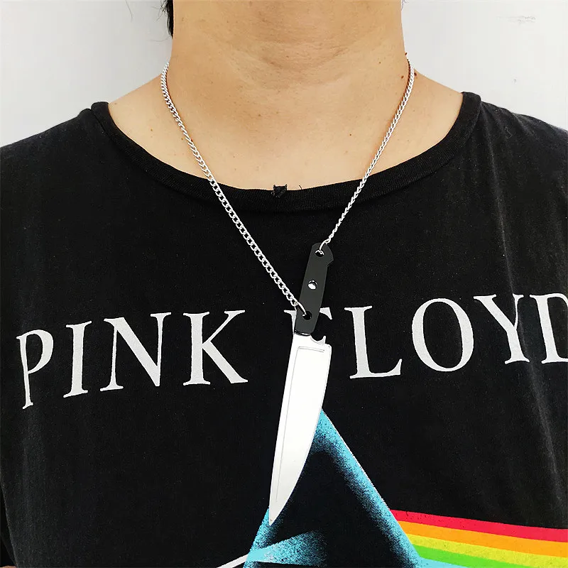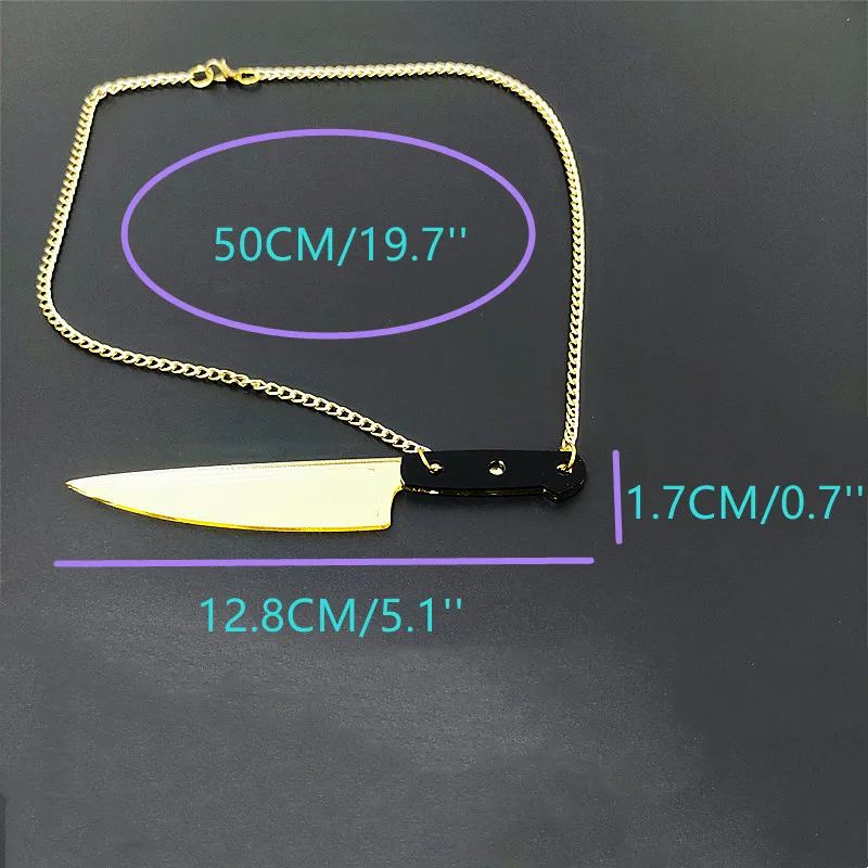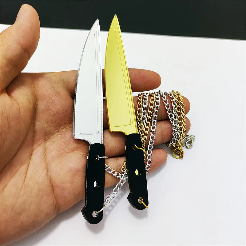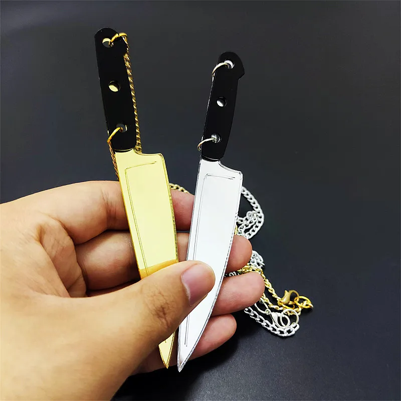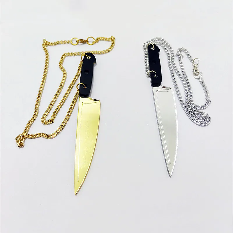 HipHop Punk Gold Silver Color Knife Weapons Pendant Necklace for Women Men Mirror Halloween Acrylic Jewelry Accessories