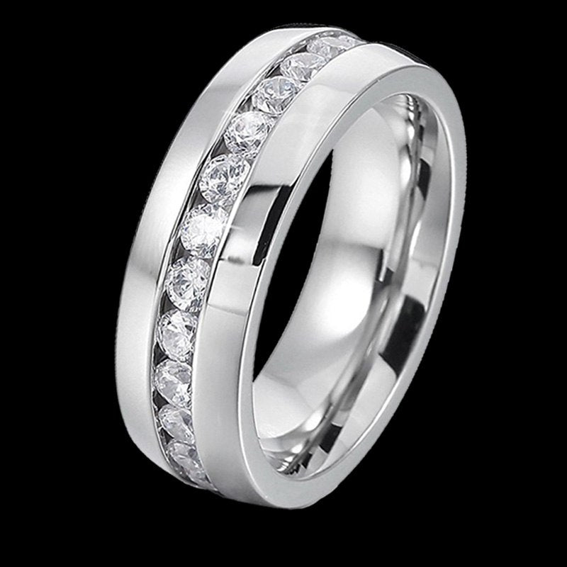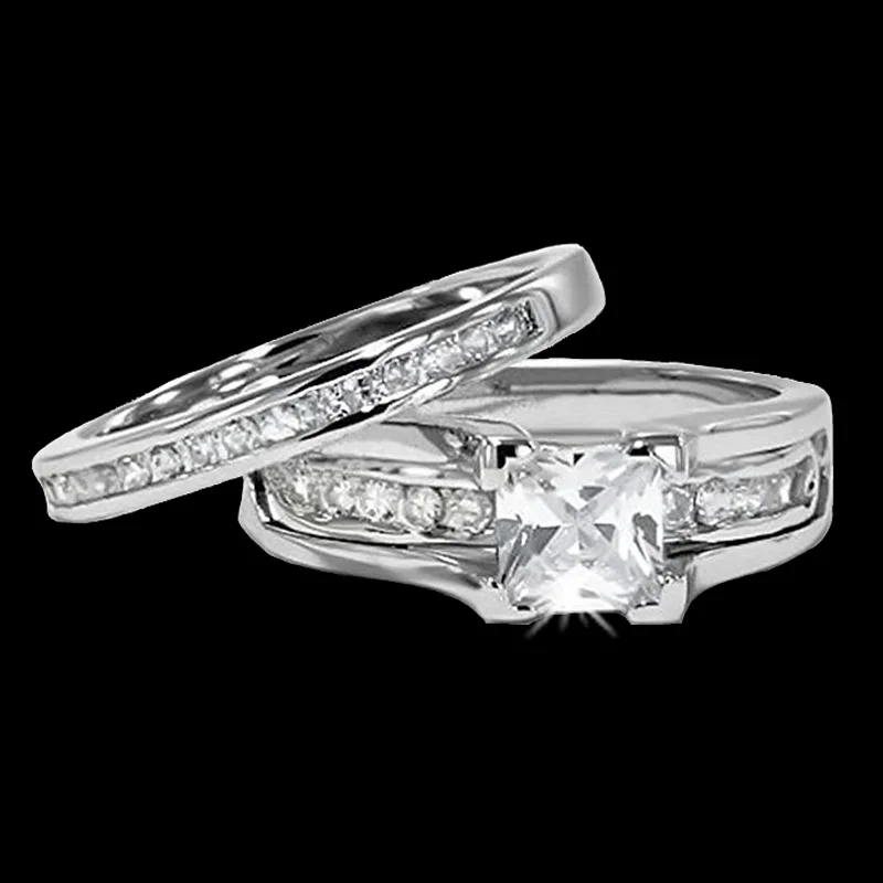 His and Her 316L Stainless Steel Princess Cut Wedding Ring Sets and Eternity Wedding Band