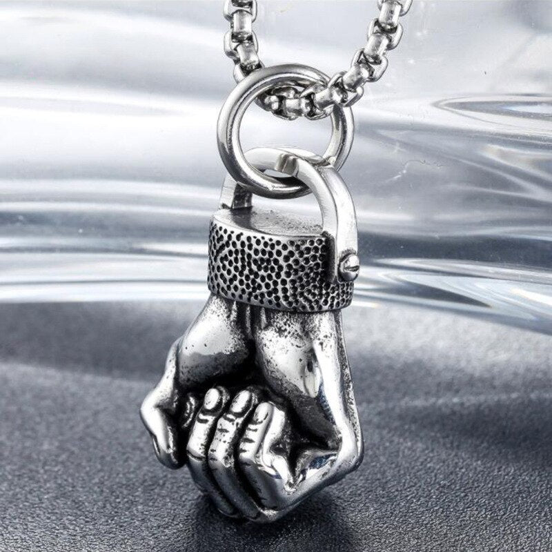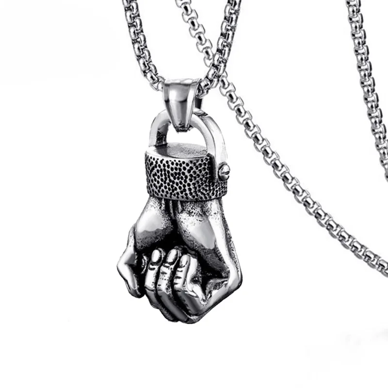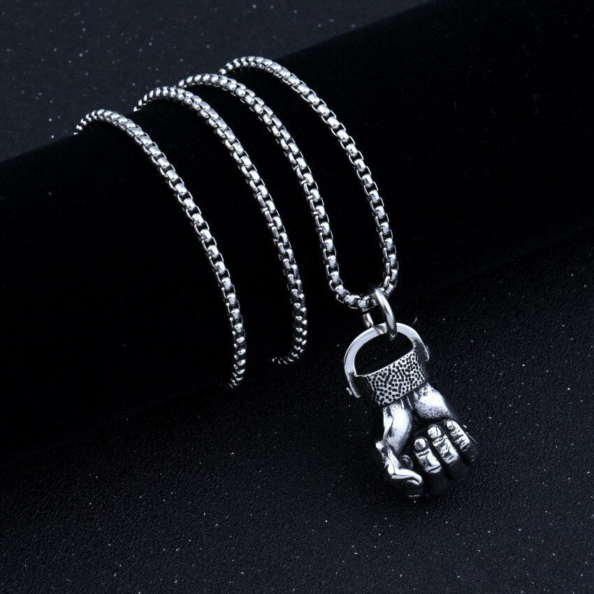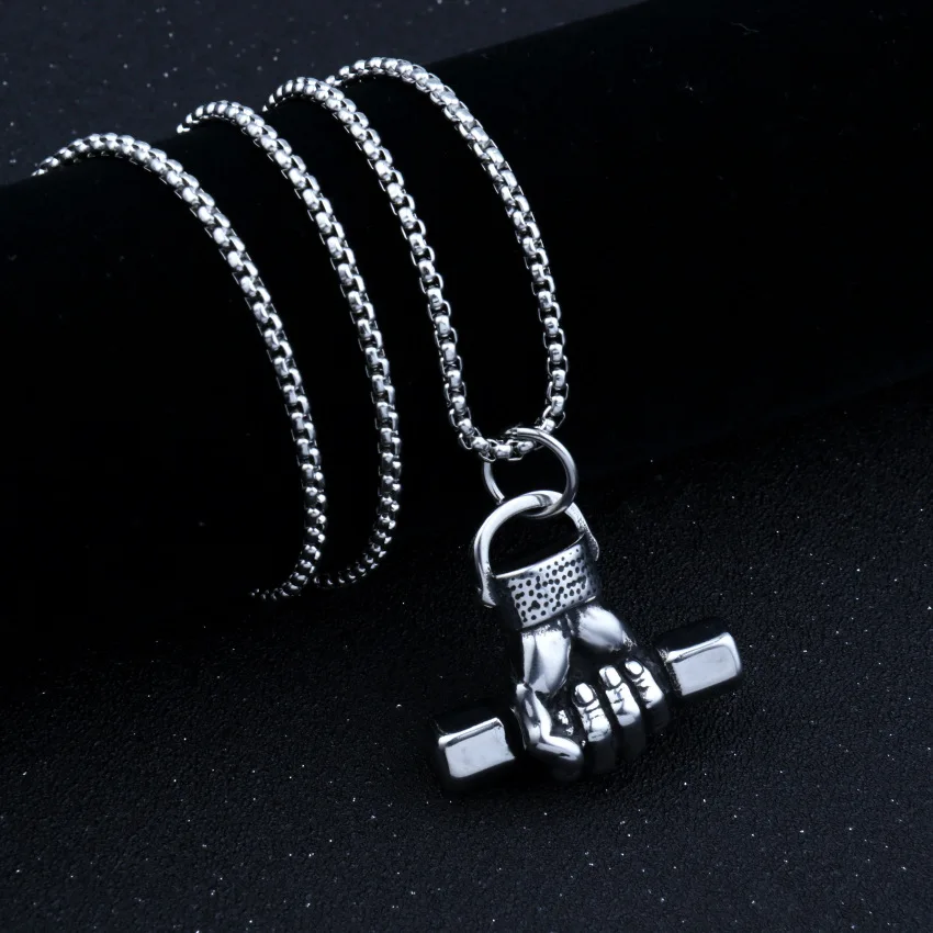 HNSP Punk Sportsman Dumbbell Power Hand Necklace Pendant For Men