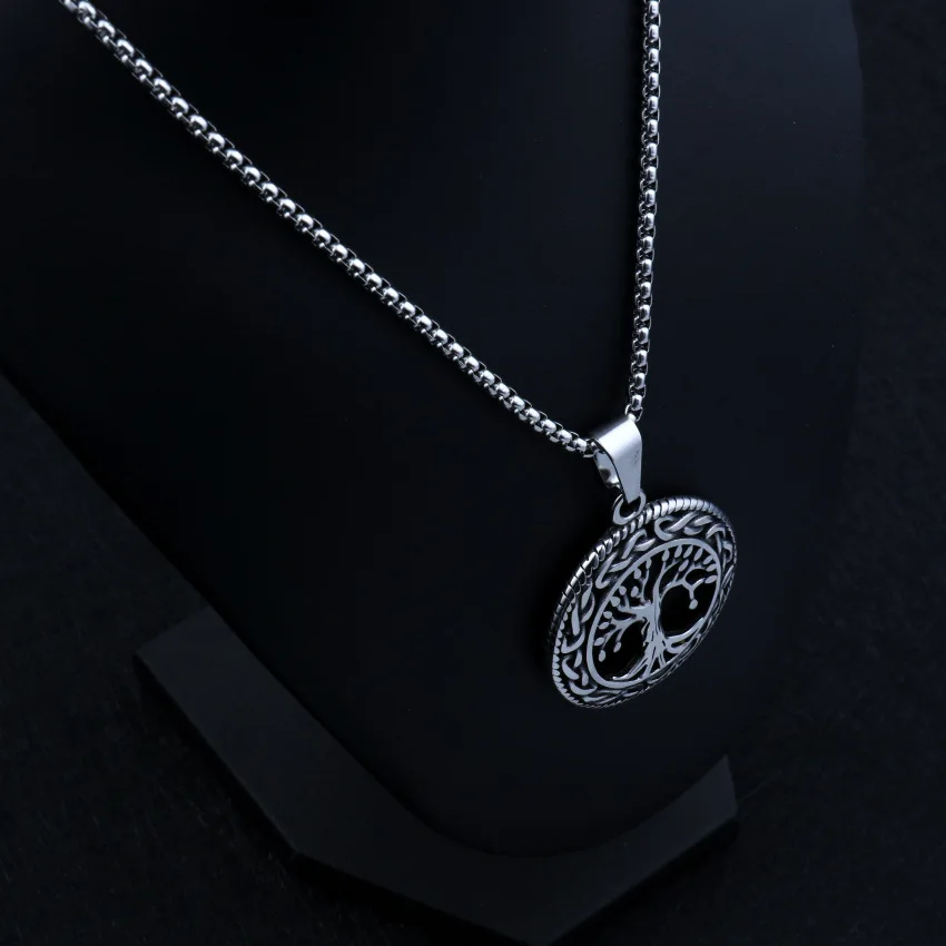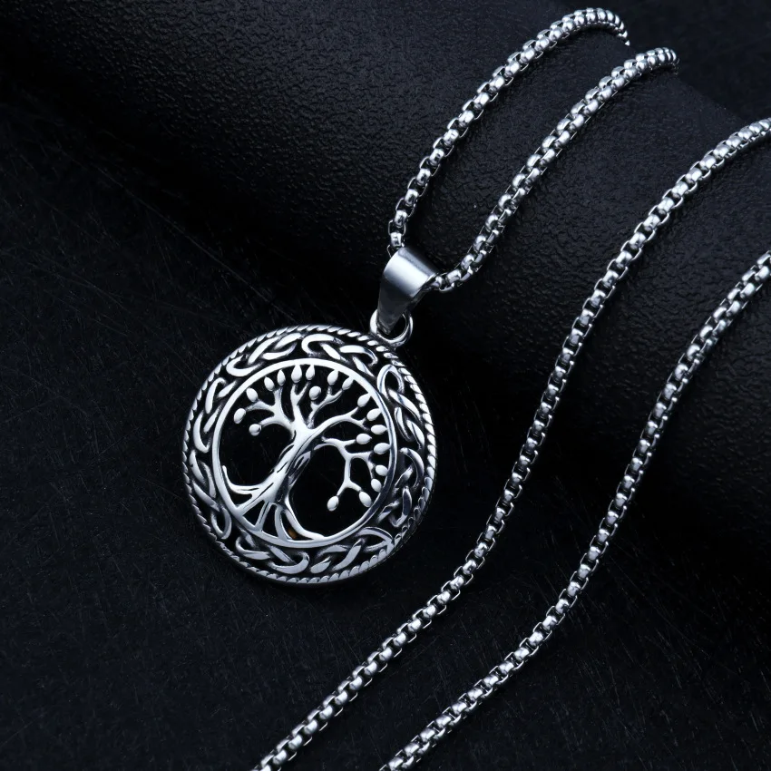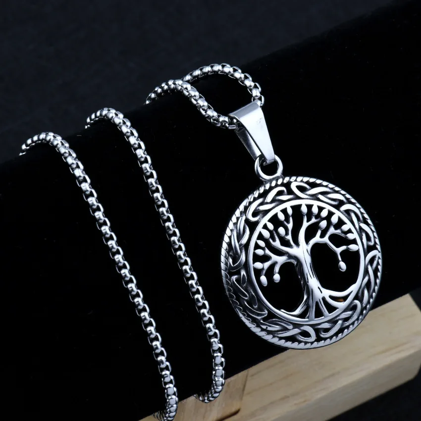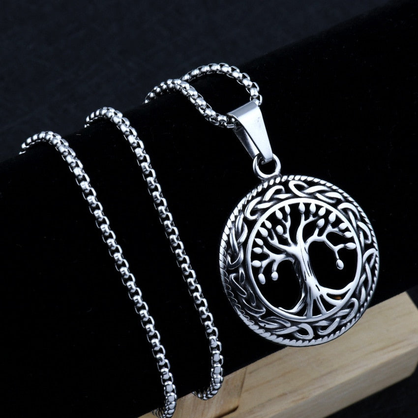 HNSP Viking Tree Life Round Pendant Stainless Steel Chain Necklace For Men Male Neck Punk Gothic Jewelry