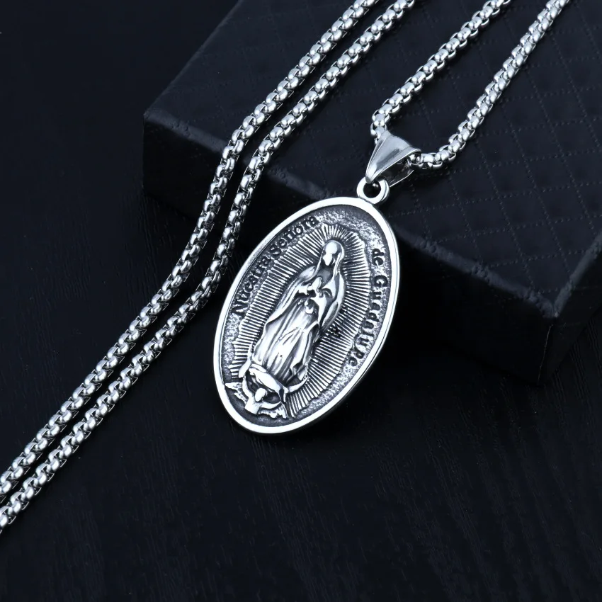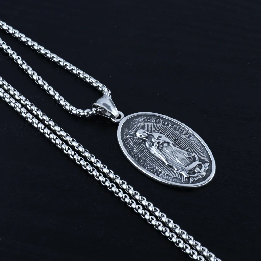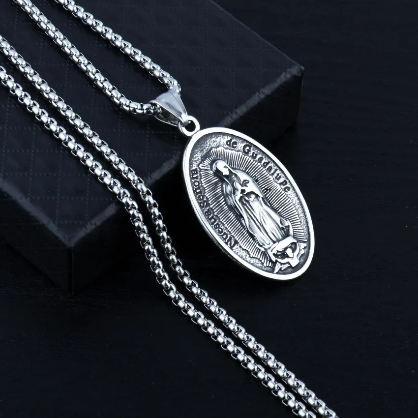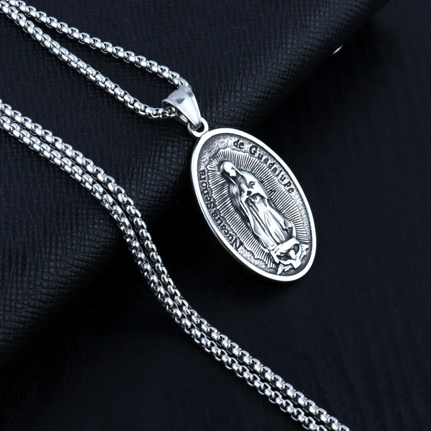 HNSP Vintage Oval Virgin Mary Chain Pendant Necklace For Men Women Neck Lucky Punk Jewelry Gift