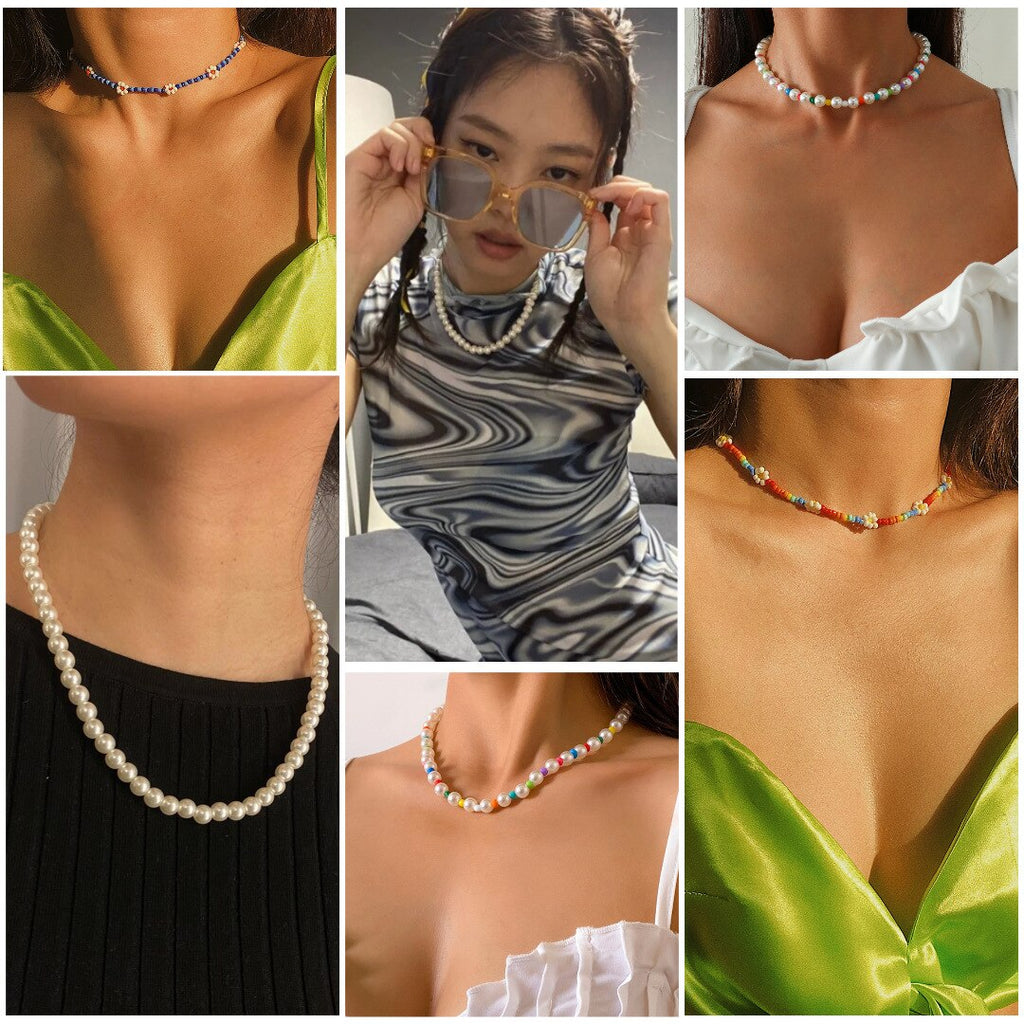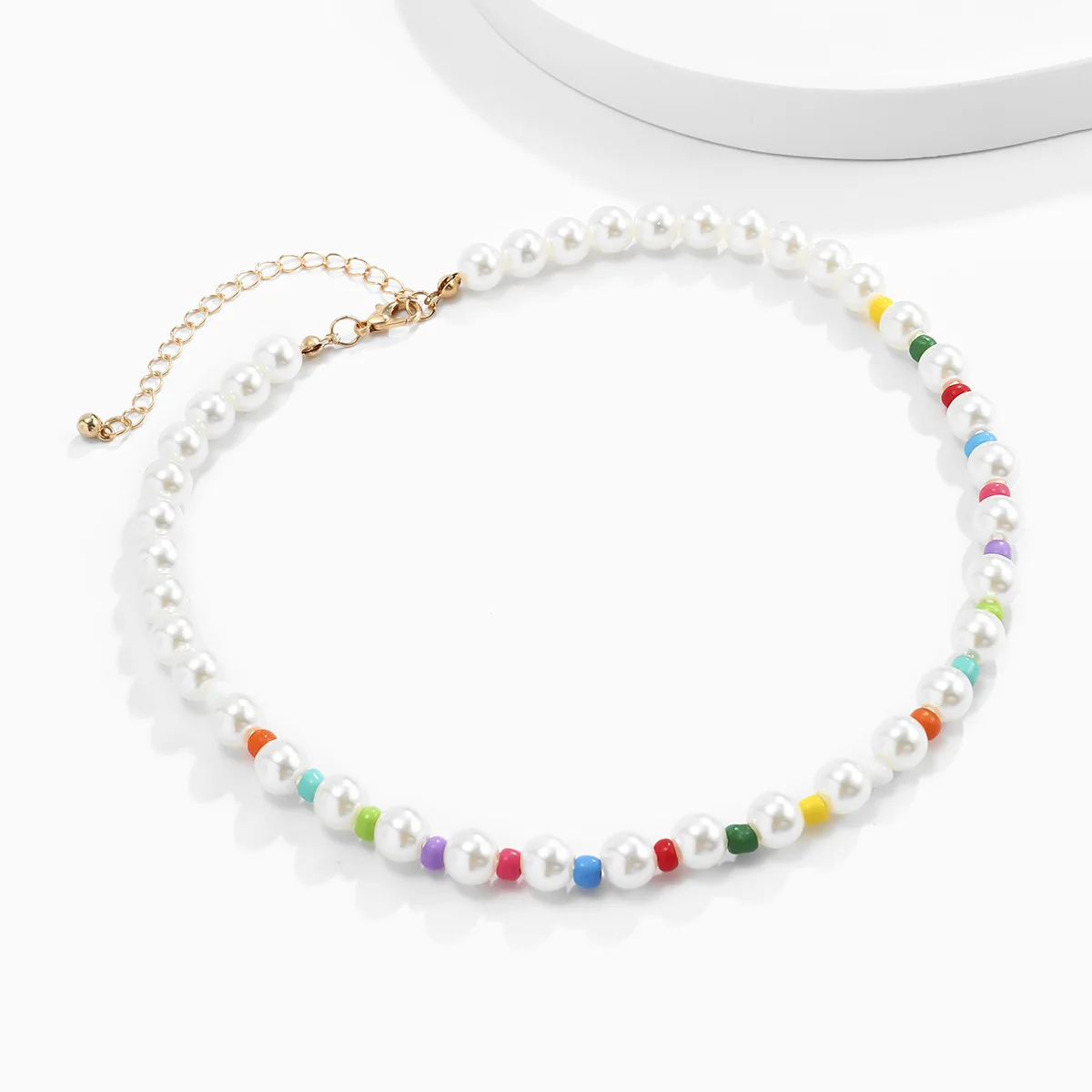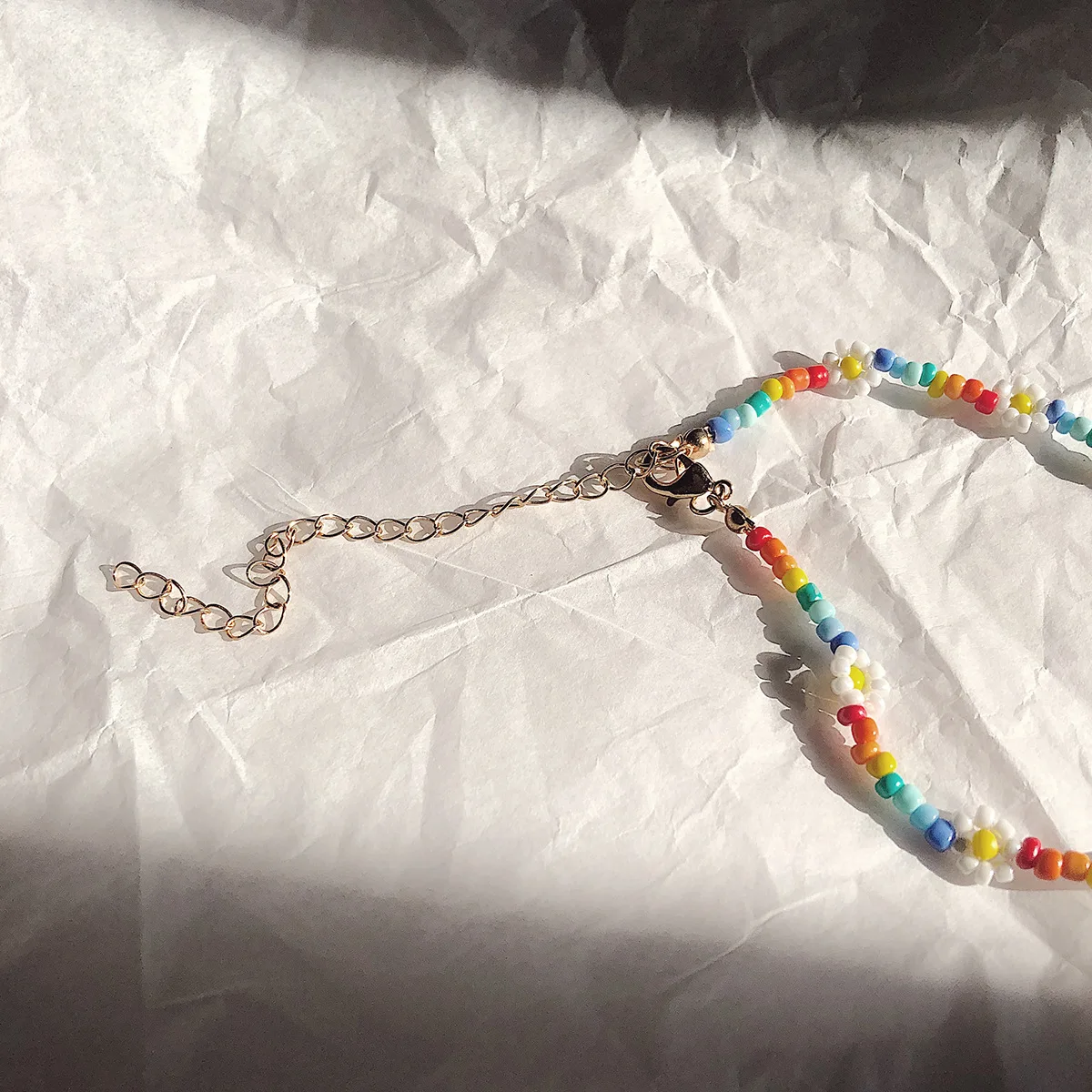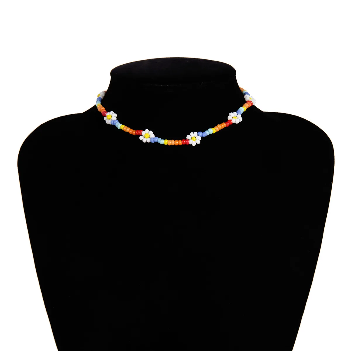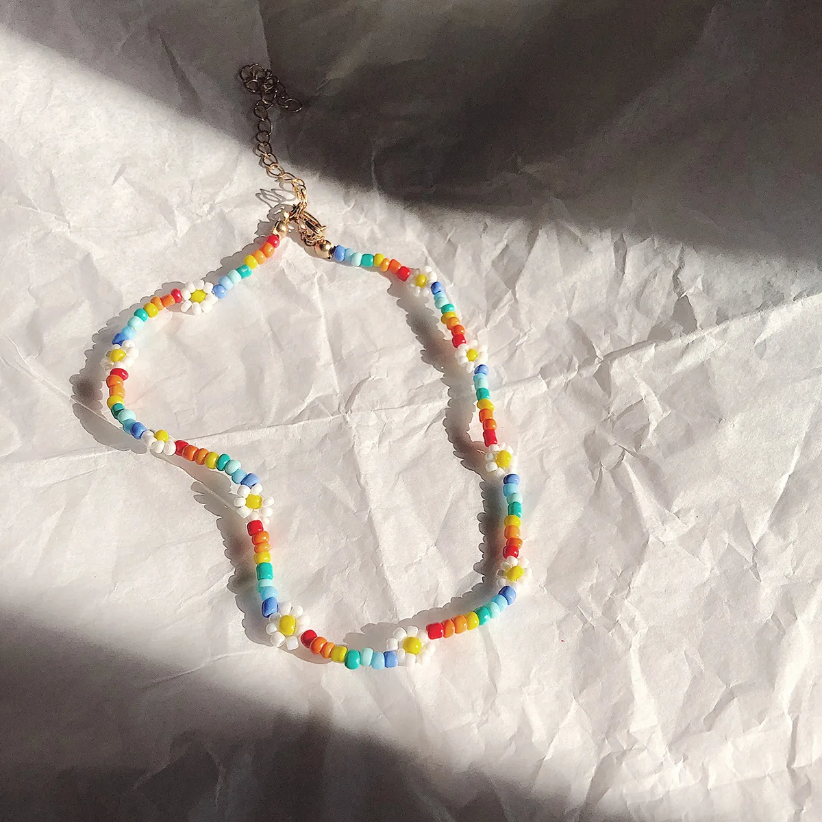 Holiday Style Rice Bead Woven Small Fresh Clavicle Chain Simple Round Bead Chain Ssmall Daisy Necklace