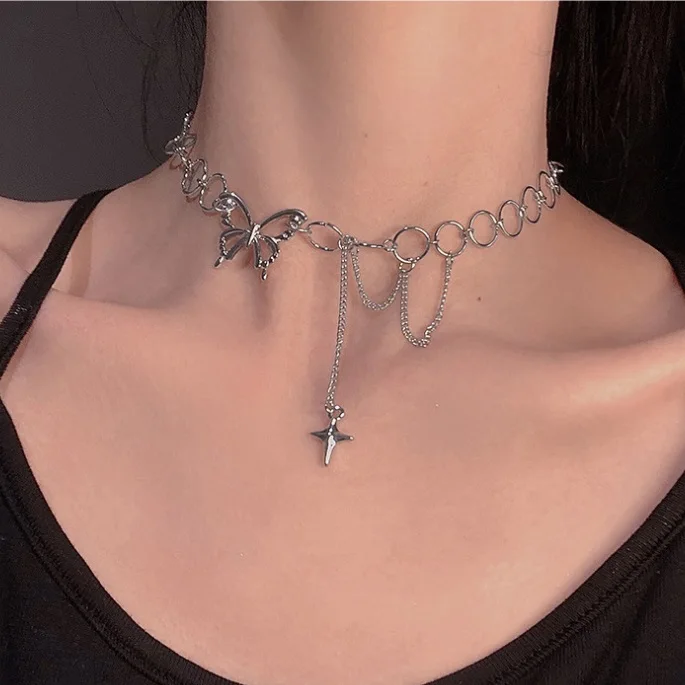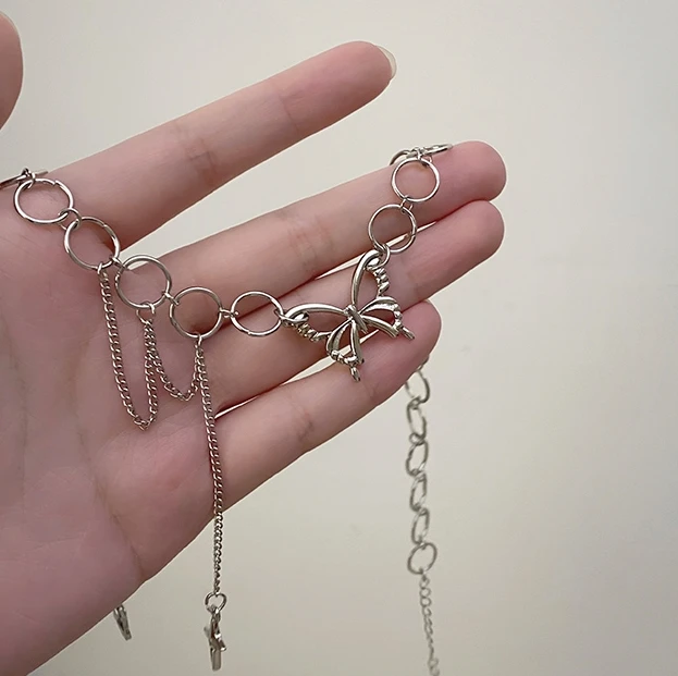 Hollow Korean Sweet Butterfly Choker Necklace Statement Girlfriend Gift Cute Bicolor Chain Necklace Jewelry Collier Femme 2021