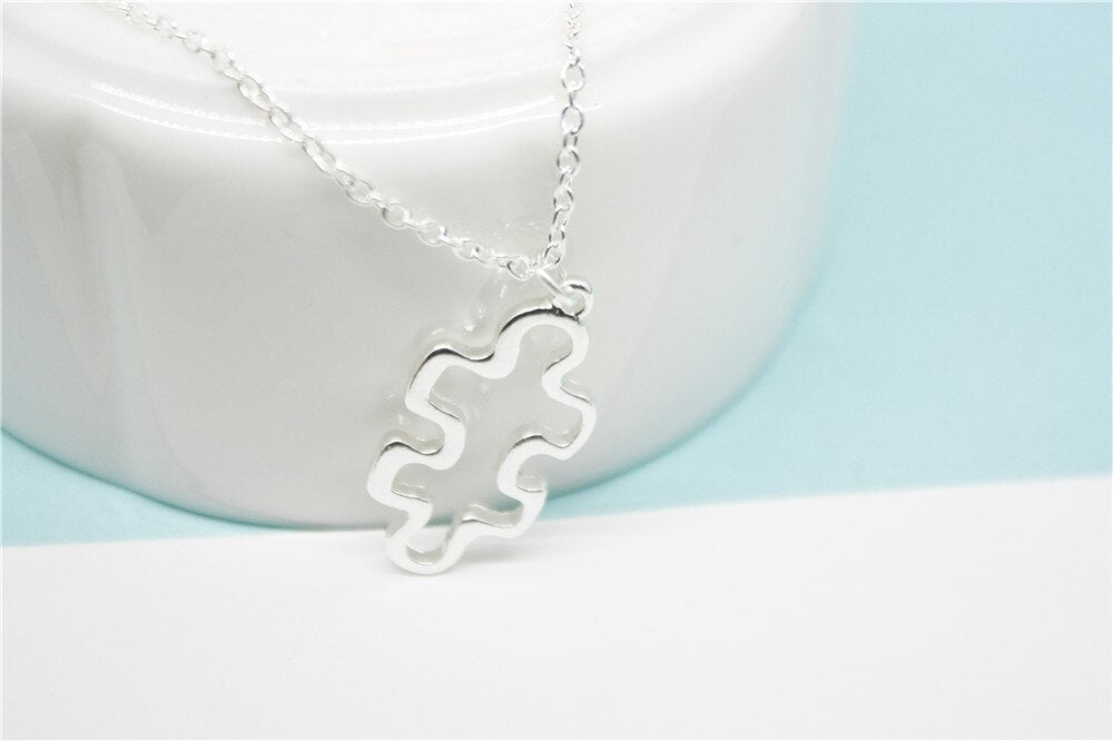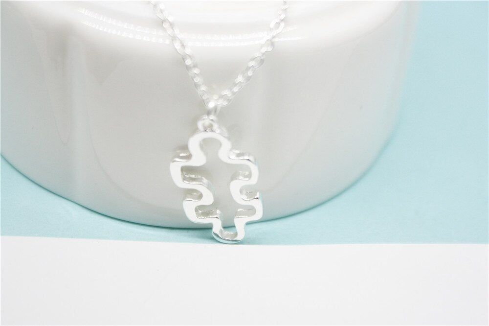 Hollow Outline Puzzle Piece Autism Awareness Quote Jigsaw Necklace Mentor Teacher Mom Friends Meaningful charm necklace jewelry