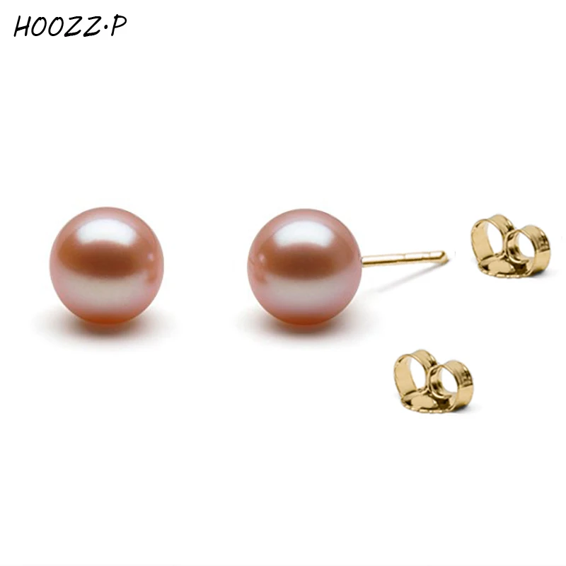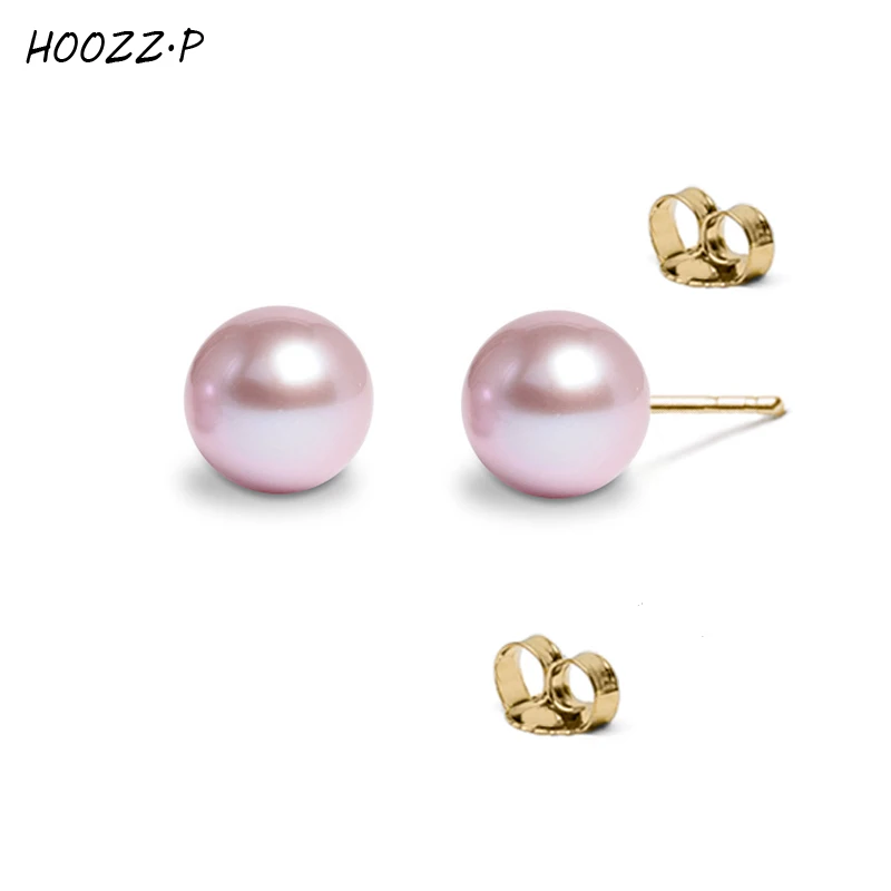 Handpicked High Quality Luster 7-8mm Round White Lavender Pink Color Cultured Pearl Stud Earrings for Women