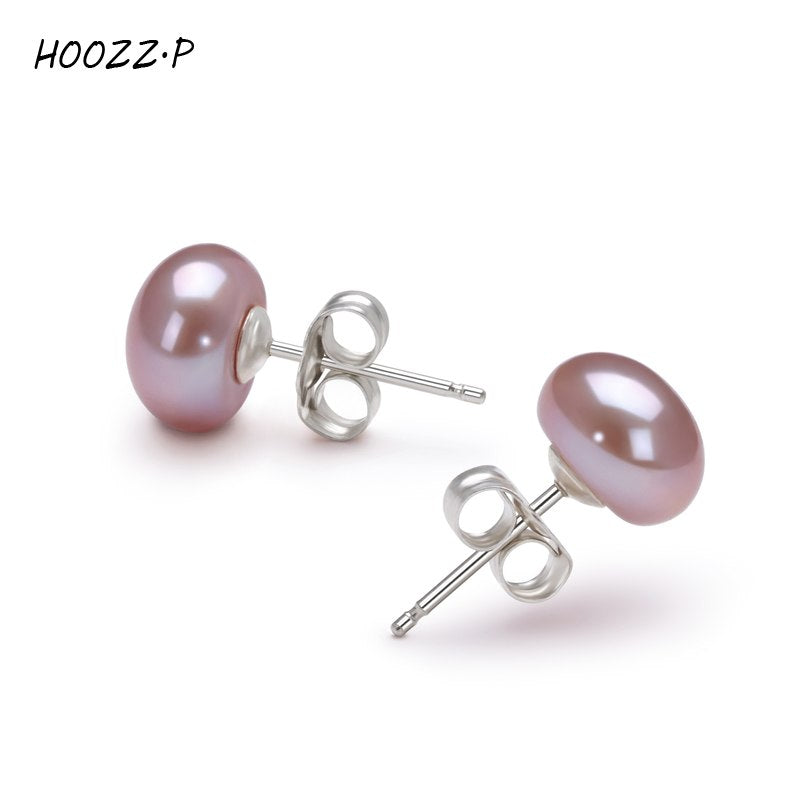 Handpicked High Qualtitly 7-8mm Button Cultured Pearl Stud Earrings for women
