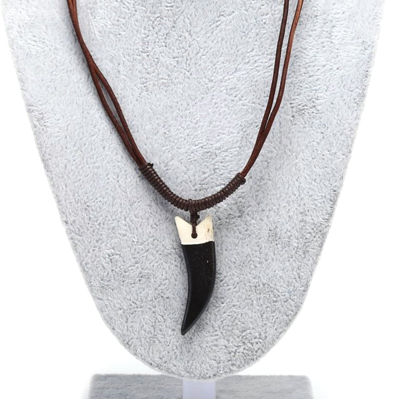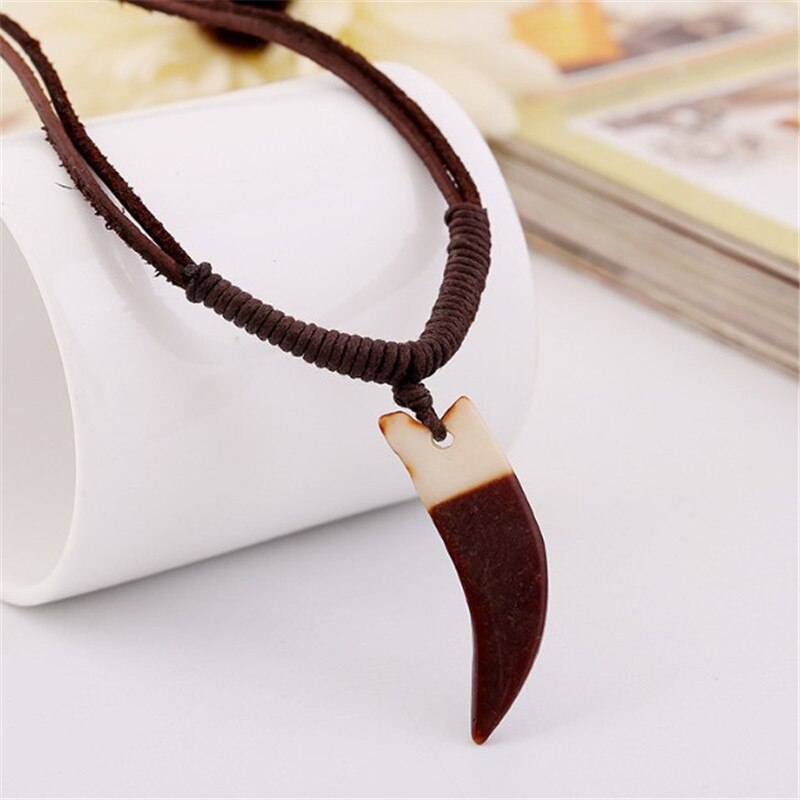 Horn Pendant Necklace Men Brown Genuine Leather Necklace Jewellery Ethnic Charm Accessories Drop Shipping