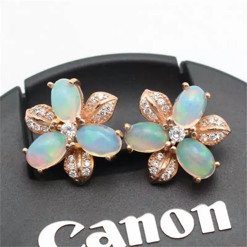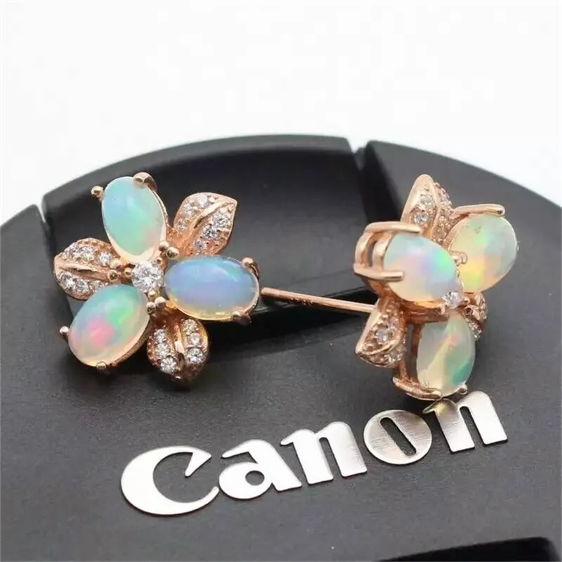 Hot Popular Earrings Jewelry Rose Gold Color Stud Earrings With White Oval Opal Engagement Gifts For Ladies