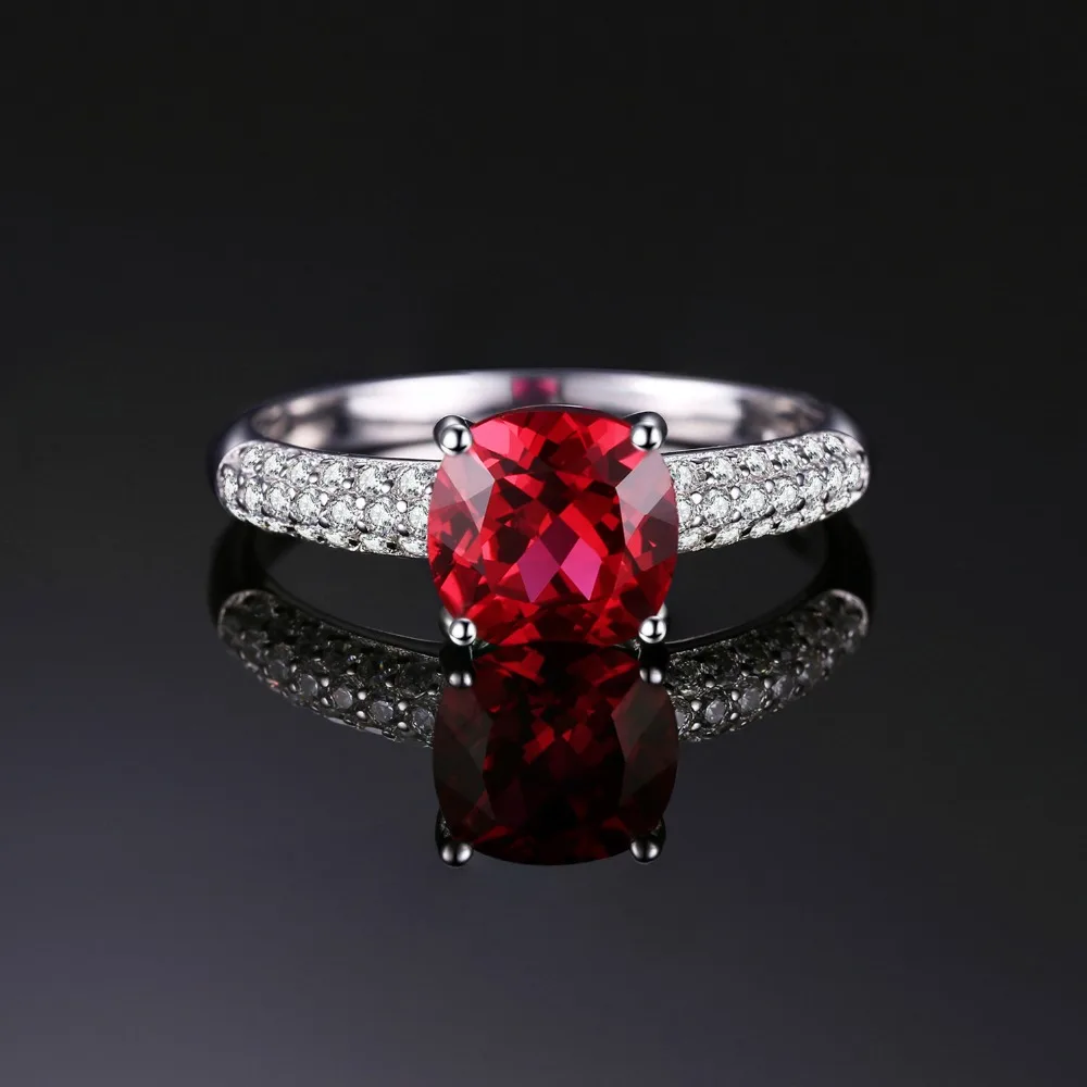 Cushion 2.6ct Created Red Ruby Solitaire Engagement Ring 925 Sterling Silver Ring Fashion Design Fine Jewelry