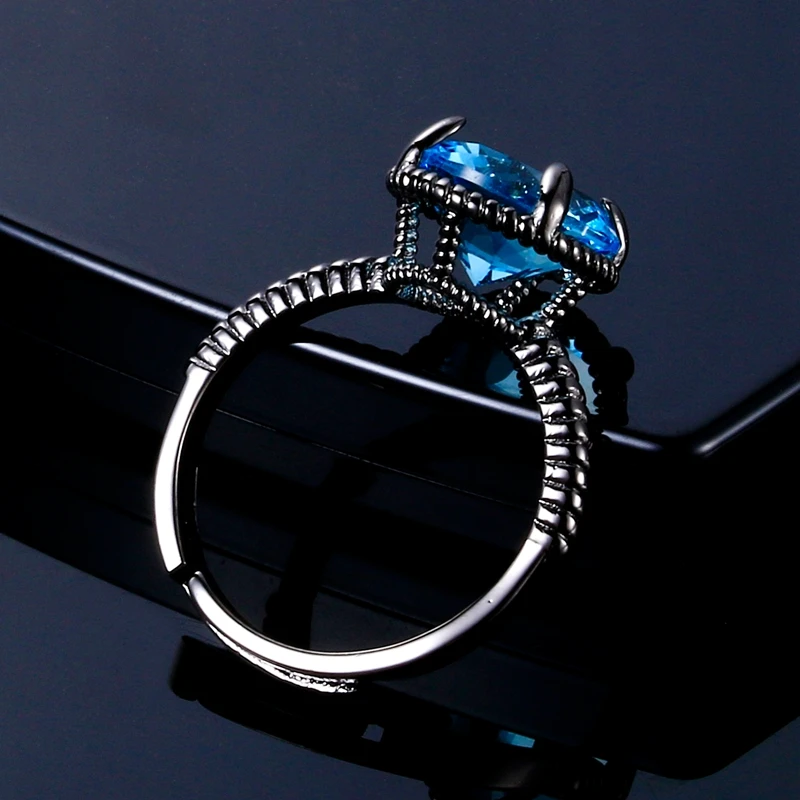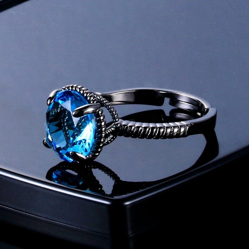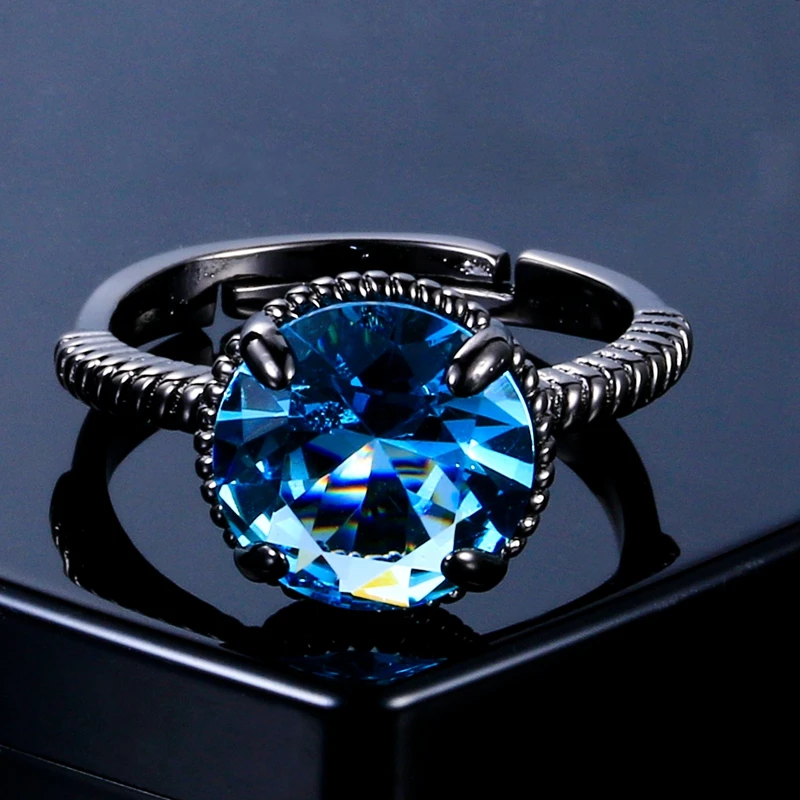Hot Sale Black Gun Plated Natural Aquamarine rings 10X10MM Round Gemstone Vintage 925 Silver Ring Elegant New Fashion Jewelry