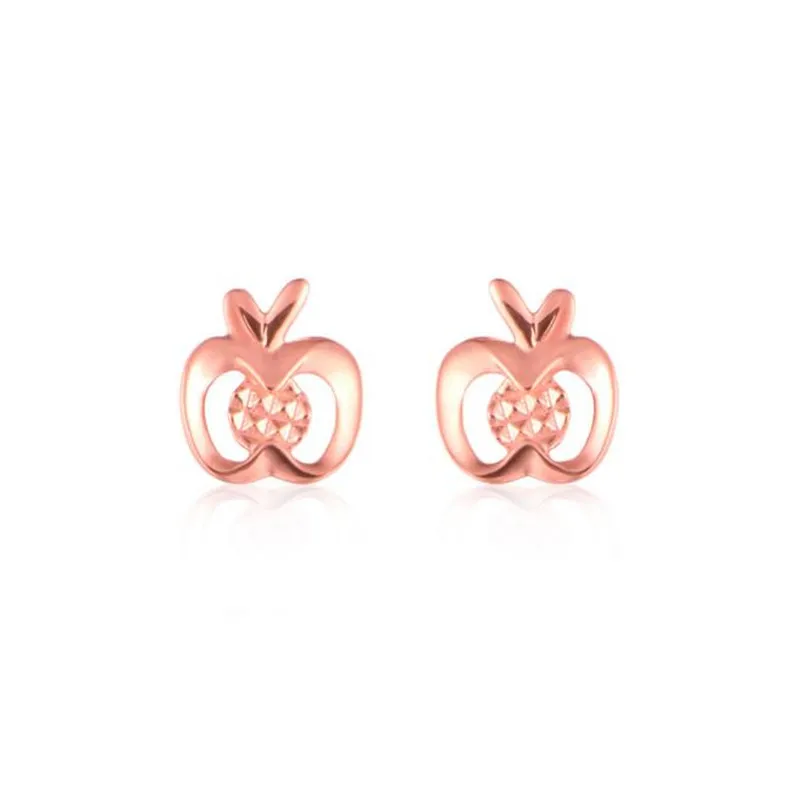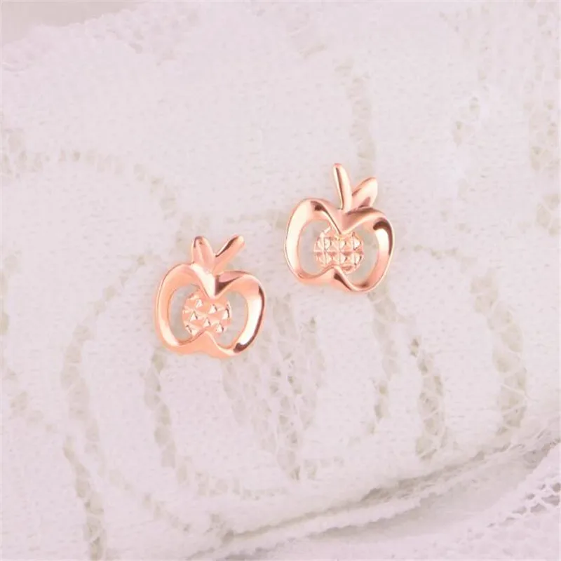 Hot Sale Fashion Lovely Rose Gold Color Apple Stud Earrings For Women High Quality 18K Gold AU750 Jewelry Accessories Wholesale