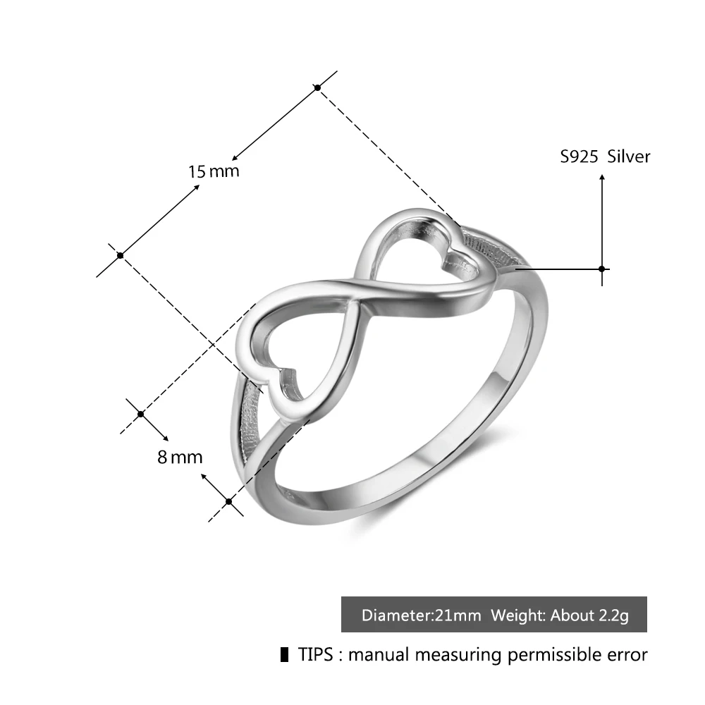 Infinity Love Heart 925 Sterling Silver Rings for Women Romantic Style Rings Fine Accessories Best Jewelry Gifts