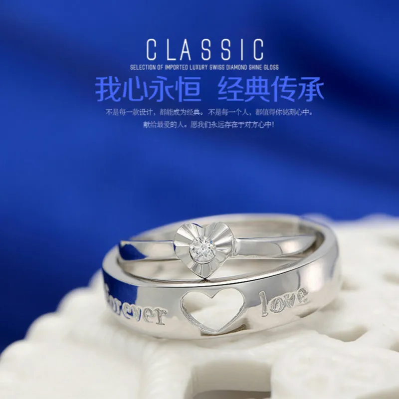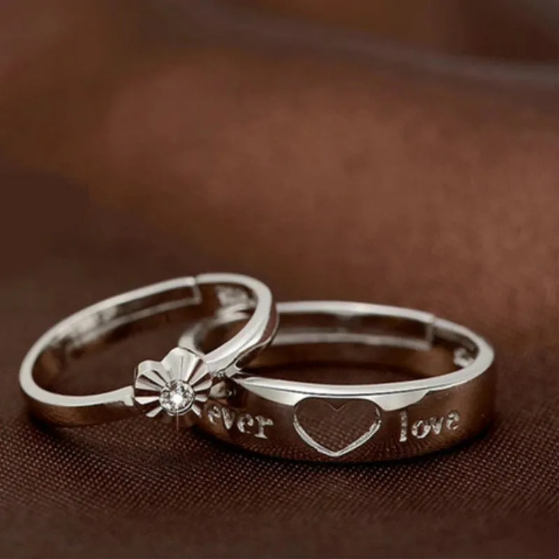 Hot Selling Hollow Heart Silver Color Ring Forever Love Couple Ring for Women Men High Quality Valentine's D Gifts