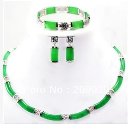 925 silver Noblest green jade bead necklace 17 bracelet 7.5inch earring set