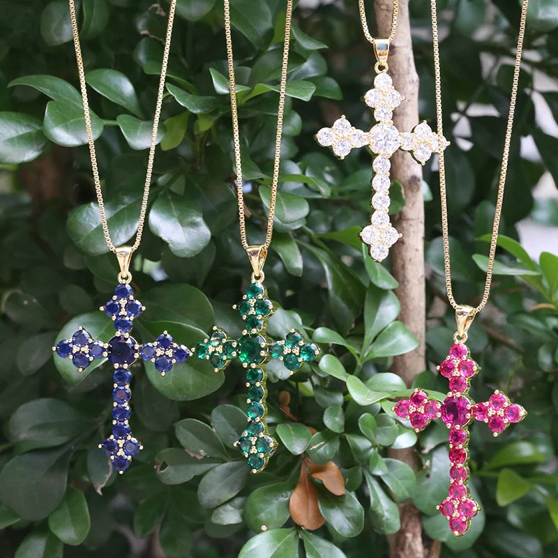 Huitan Cool Cross Necklace for Women Inlaid CZ Stone Hip Hop Style Girl’s Pendant Necklace with Special Box Chain Jewelry