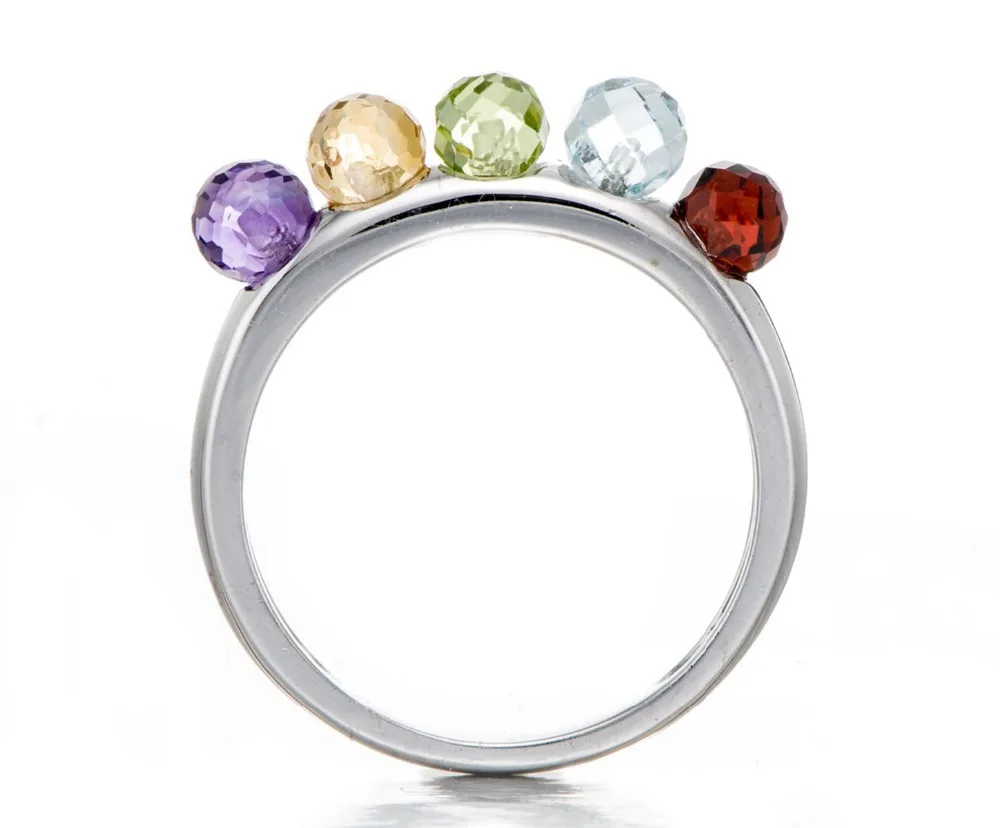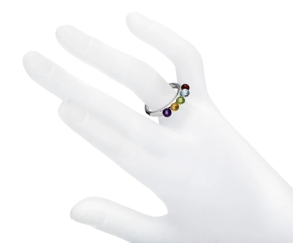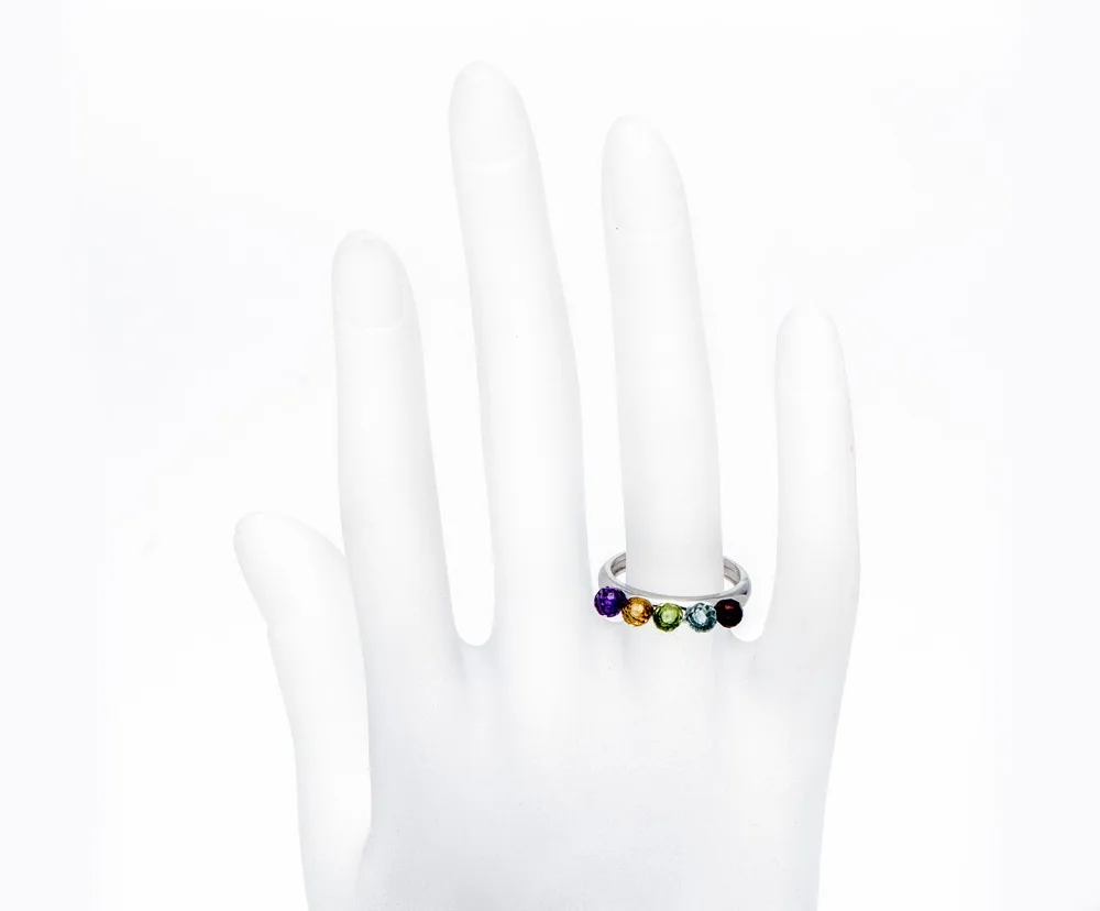Hutang 100% Multi Color Gemstones Beads 5-Stone Solid 925 Sterling Silver Ring Fine Jewelry Unique Design For Women Wedding